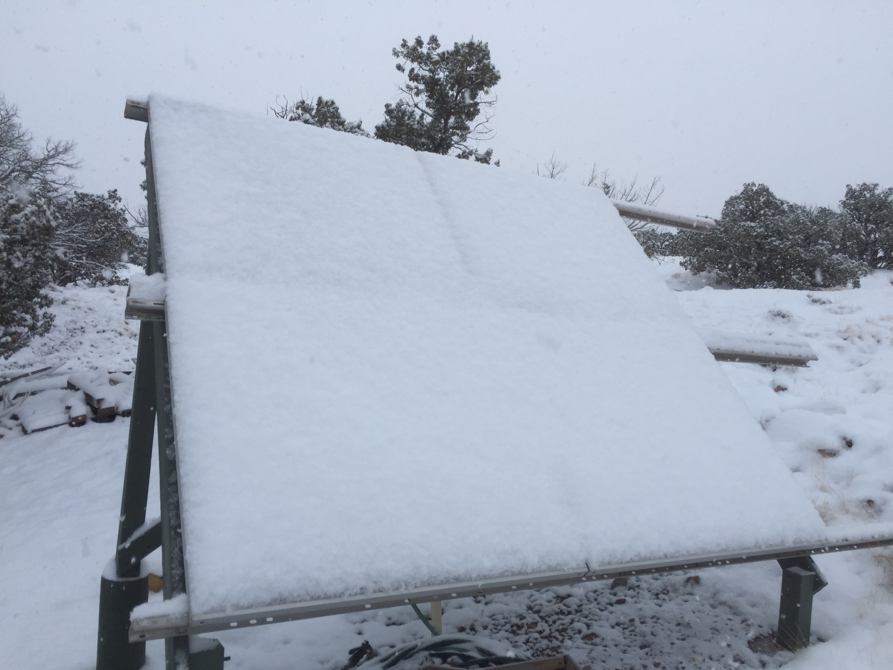 Not exactly. But the thermometer said it was 37o out, so you know it was just adding to the damp. I bundled up and cleaned off the solar panels, then leashed up Little Bear for my second mistake of the morning…