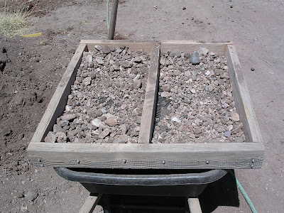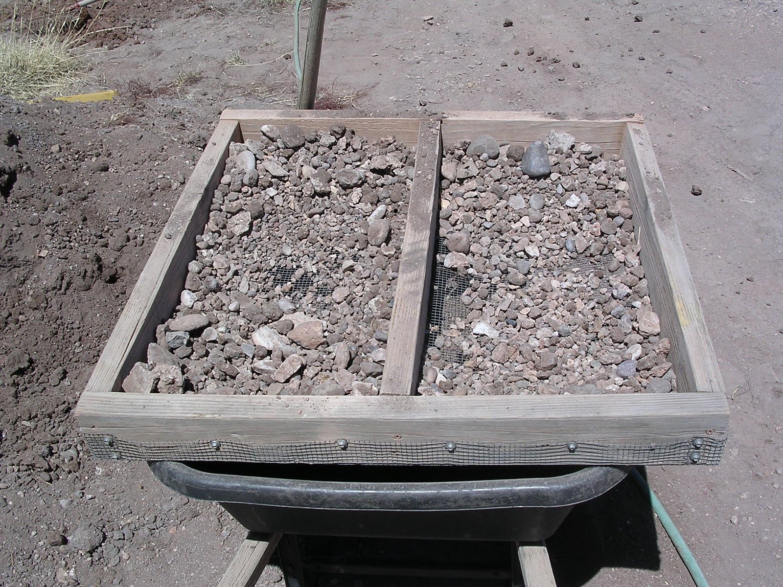 The cinders I scavenged a couple of days ago didn’t go nearly as far in the leach trench as I hoped, which means I’m quickly down to Plan B – sift pebbles.