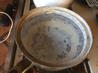 …I filled the pan I normally use for heating wash water. I knew at the time it made exactly zero sense – I was not really saving anything by heating up drinking rather than well water. But it was the principle of the thing, dammit. 🙂