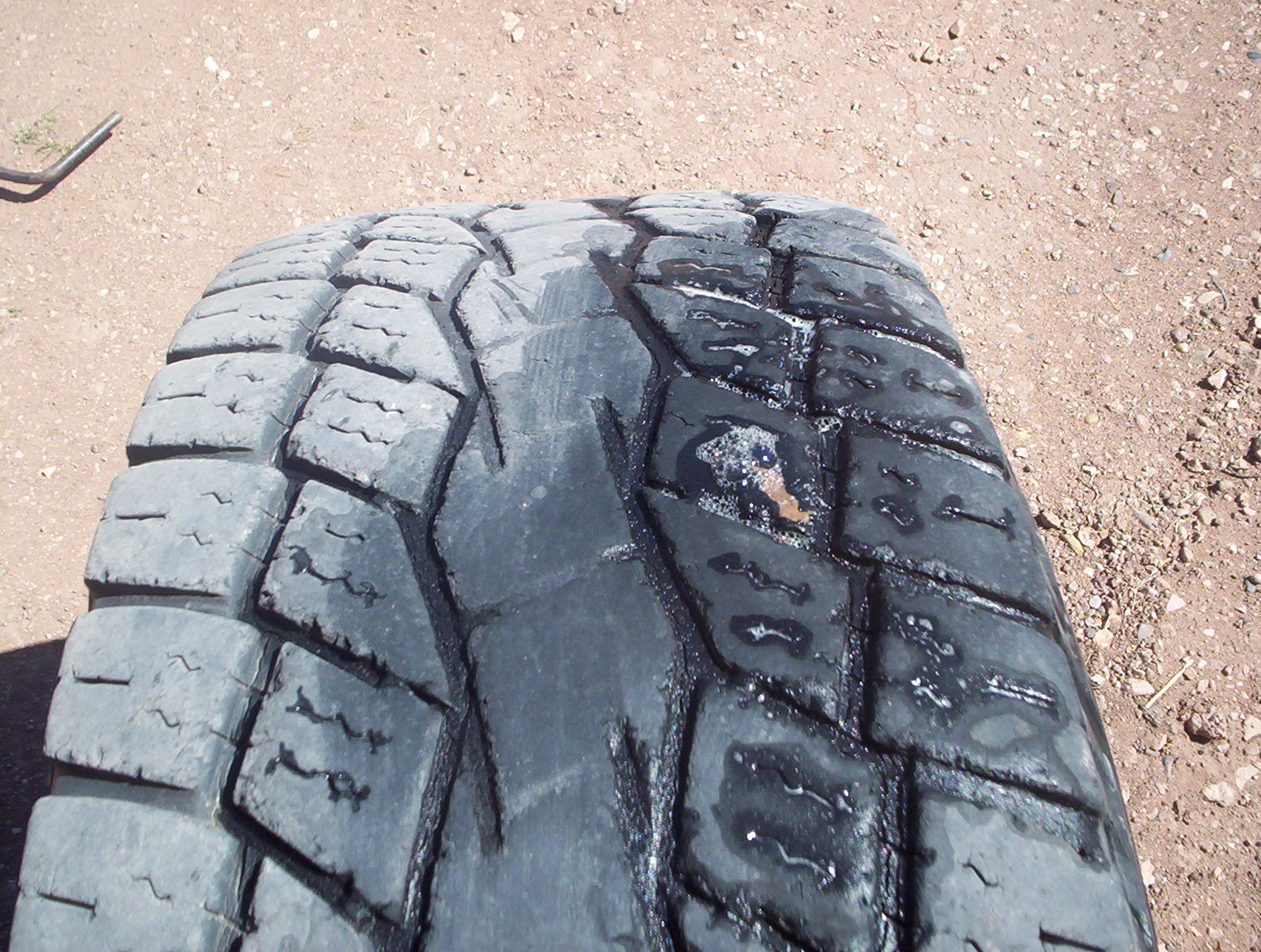 But when the newest leak is next to the plug you inserted that’s next to the last plug you inserted, it’s time to acknowledge defeat. I actually had my plug kit out and was preparing to bore yet another big hole when I came to my senses. I’ll mount the spare and see if I can get the local shop to go along with the joke long enough to unmount and patch it.