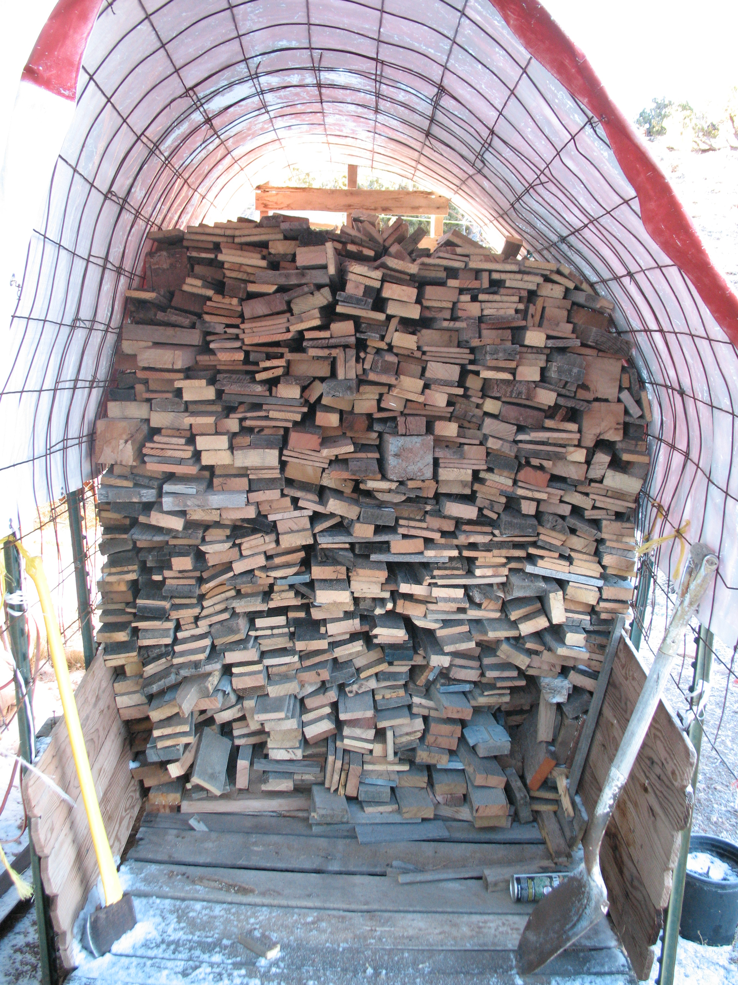 Some people told me that you can’t heat with pine, you must heat with oak or even wood I wouldn’t be able to identify let alone acquire like locust or petrified TSA screeners or something. That’s not strictly true, but like so many improvements hardwood is such an improvement as to be almost a necessity in hindsight. All those old weathered hardwood pallets I cut up over the summer make a helluva coal bed in my little stove. Definitely produces better heat and makes less ash (and less chimney mess) than juniper. So far I haven’t burned a single stick of juniper, and I’m not nostalgic for it.