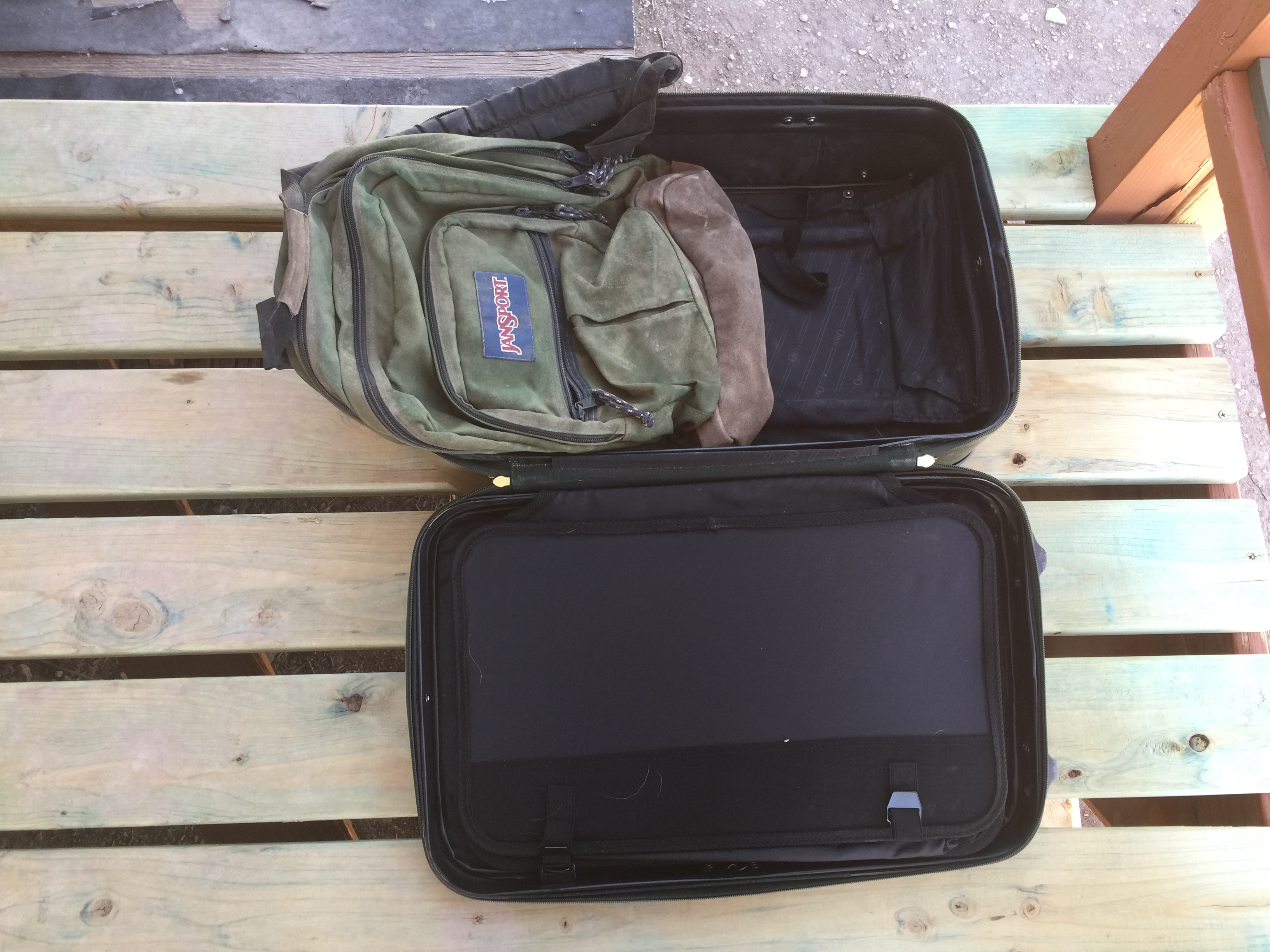 Yesterday I got my old suitcase out of Landlady’s barn loft, thinking there might be some townie clothes in there that need to go to the thrift store tomorrow. There used to be, but I guess I got rid of them the last time I used the suitcase 2 1/2 years ago. Instead…