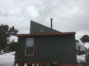 Initially, before the snow became ice, there was a little encouraging sliding but it soon stopped, causing a little more trouble than it solved because it managed to neatly overhang and bypass the gutter. It wasn’t stressing the gutter, didn’t touch it at all in fact, but it also didn’t let the gutter do its job. So I ended up knocking that part of the ice off with a big pole. Other than that the only problem is that the roof sheds ice very poorly, really just leaving it there till it melts. In a wetter, colder climate this could easily become unacceptable. In my case, fortunately Neighbor D insisted on overbuilding the roof on 16” centers, which I initially wasn’t very happy with because it required me to scrounge more timber and delayed the roof. I’ve gotten more happy with it in the past week or so. There’s no evidence of strain at all, and it’s unlikely that the roof will see a great deal more snow than it did around New Year’s for the whole of its life.