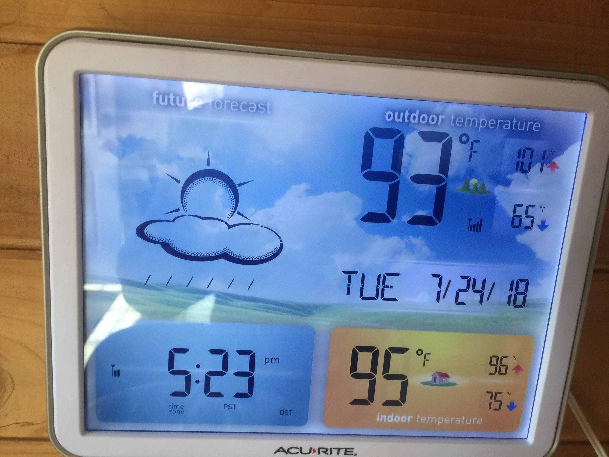 Muggy. Just passed a hundred in the shade briefly, which is only like the third time it’s done that this year and the first since the beginning of Monsoon, which means muggy hot.