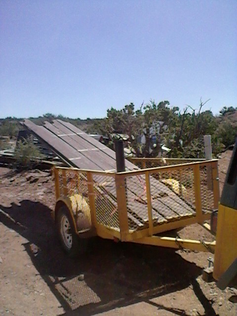 Then my neighbor S told me I could have some of the lumber from a big pergola that hadn’t worked out well. This morning I loaded six good’uns on the trailer, and this afternoon I’ll cut them to size. They’re not 16′ long, of course, but they will be when I’m done. To get the two timbers I need, I’ll cut these into 2 8′, 4 6′, and 6 4′ sections. Then I’ll haul them to the Lair and bolt them together.