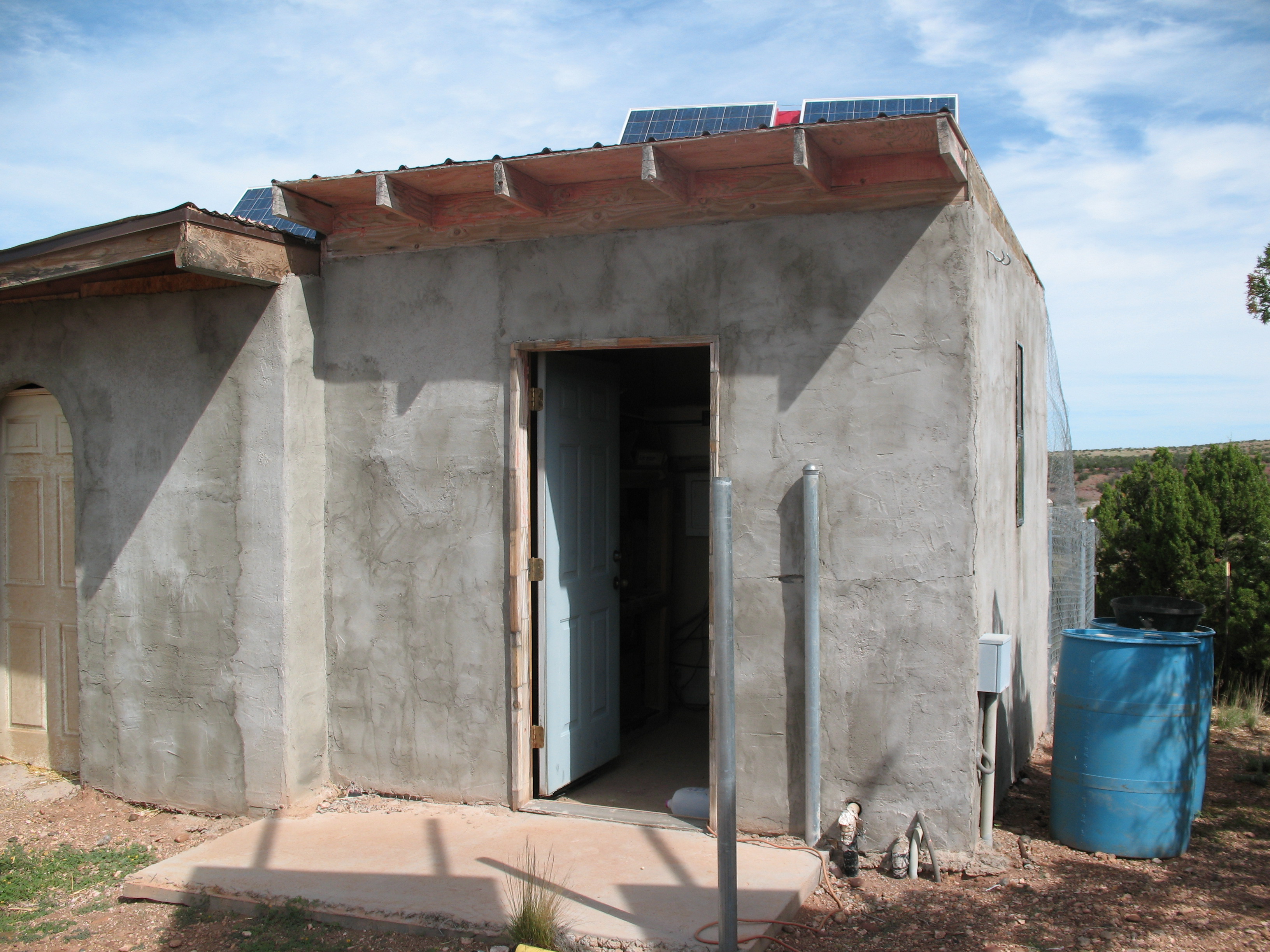 This is J&H’s powershed. J was very concerned about freeze prevention when he laid it out – it also contains his pressure pump and tank – and it’s very heavily insulated in every direction. And so it’s cramped and uncomfortable to work in.