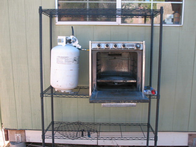 I tried to set myself up a summer kitchen with an old RV oven at the Lair a few years ago but I didn’t take the time or spend the resources to do it right.