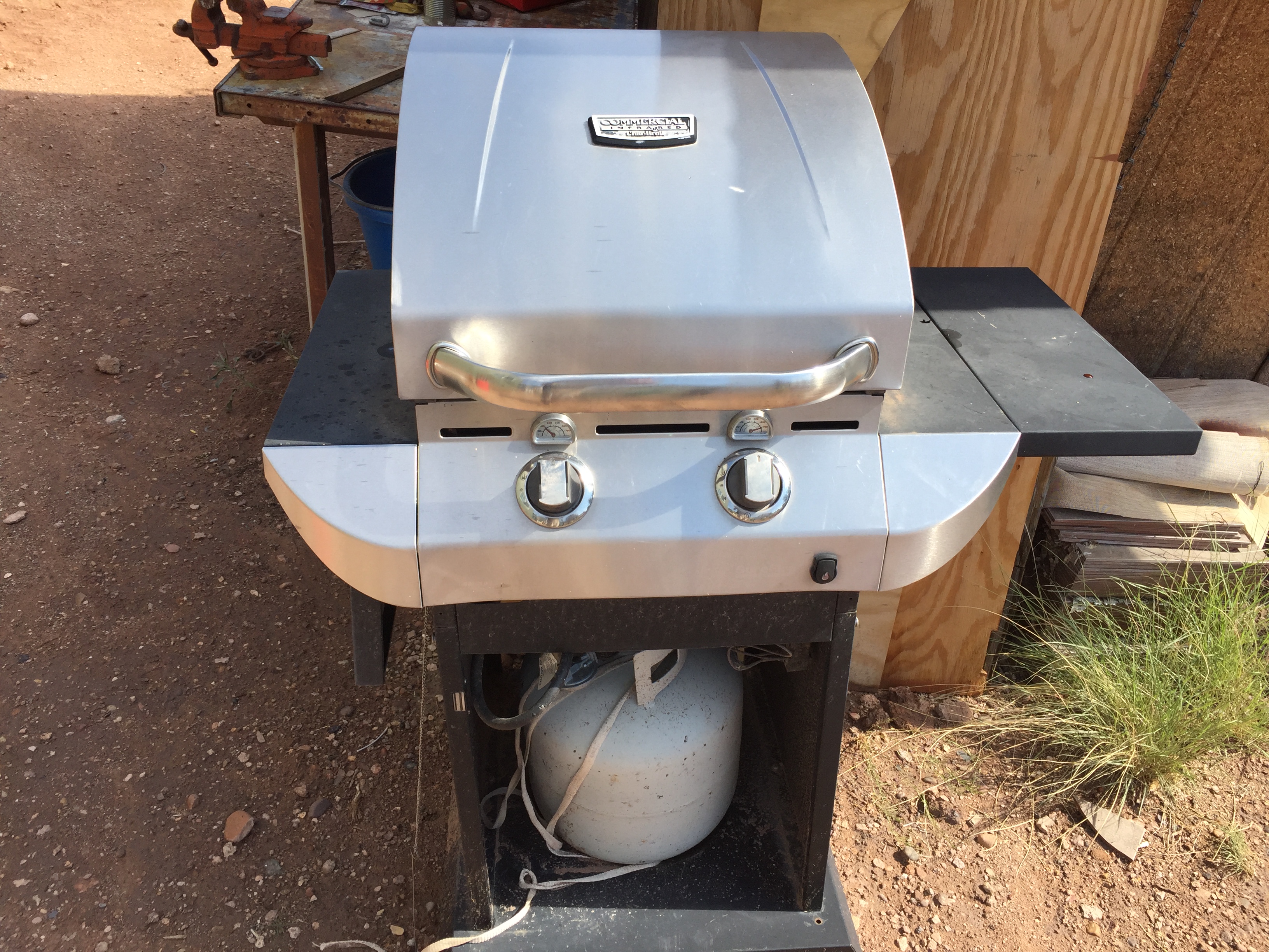 That falls very firmly in the category of “People throw away the damndest things.” I would never have spent a dime for a propane barbecue but since this one virtually landed unbidden in my lap, it behooved me to re-learn how to, you know, barbecue.