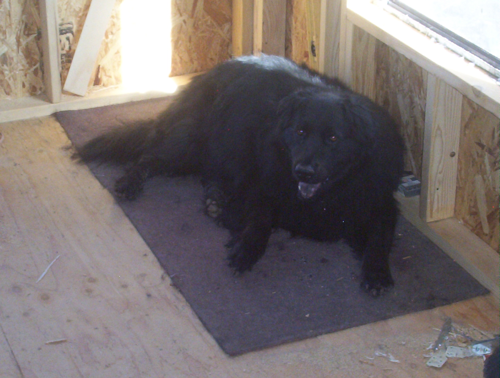 I can understand it – it’s cool and breezy at night if those two corner windows are open. I put that bit of carpet there exactly where I always intended his bed to be when the damned room was finished and since he had already selected it – But the problem is that now I’ll have to move him out when I’m working on the floor and walls. There’s only one thing Little Bear gets drama queenie about but he’s prepared to make a complete spectacle of himself over it: He hates it when I disrupt his safe corner. He was insufferable last September when I tiled the floor, and now we’re going to go through all that bullshit all over because he jumped the gun.