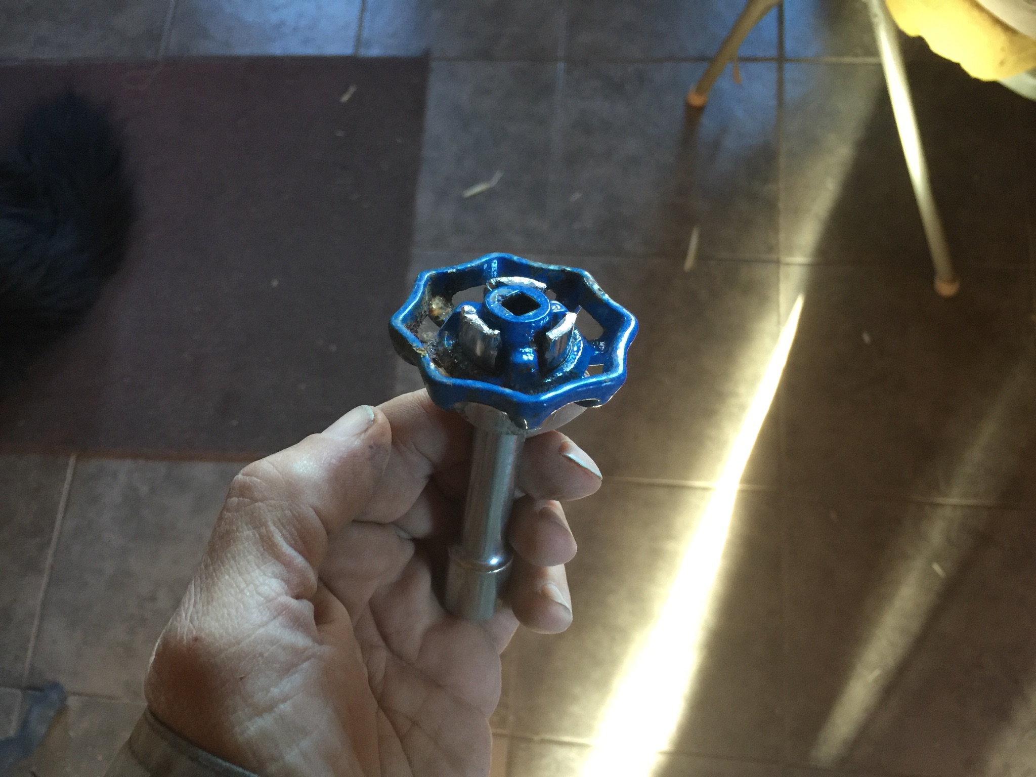 I took the handle off the valve and determined that an 11/16 socket would fit neatly into the handle’s inner hollow. If that socket had 3 lobes, it could let me connect a ratchet handle to the valve handle and give me leverage.