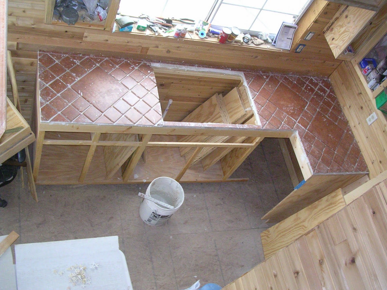 Yup, I’ve got sealer on its way along with the grout. And the grout will be the same color as the tiles, so stains won’t show as bad. Because on a counter owned by unsanitary ol’ me, bacteria doesn’t need any more help than it’ll already get and there will be stains.
