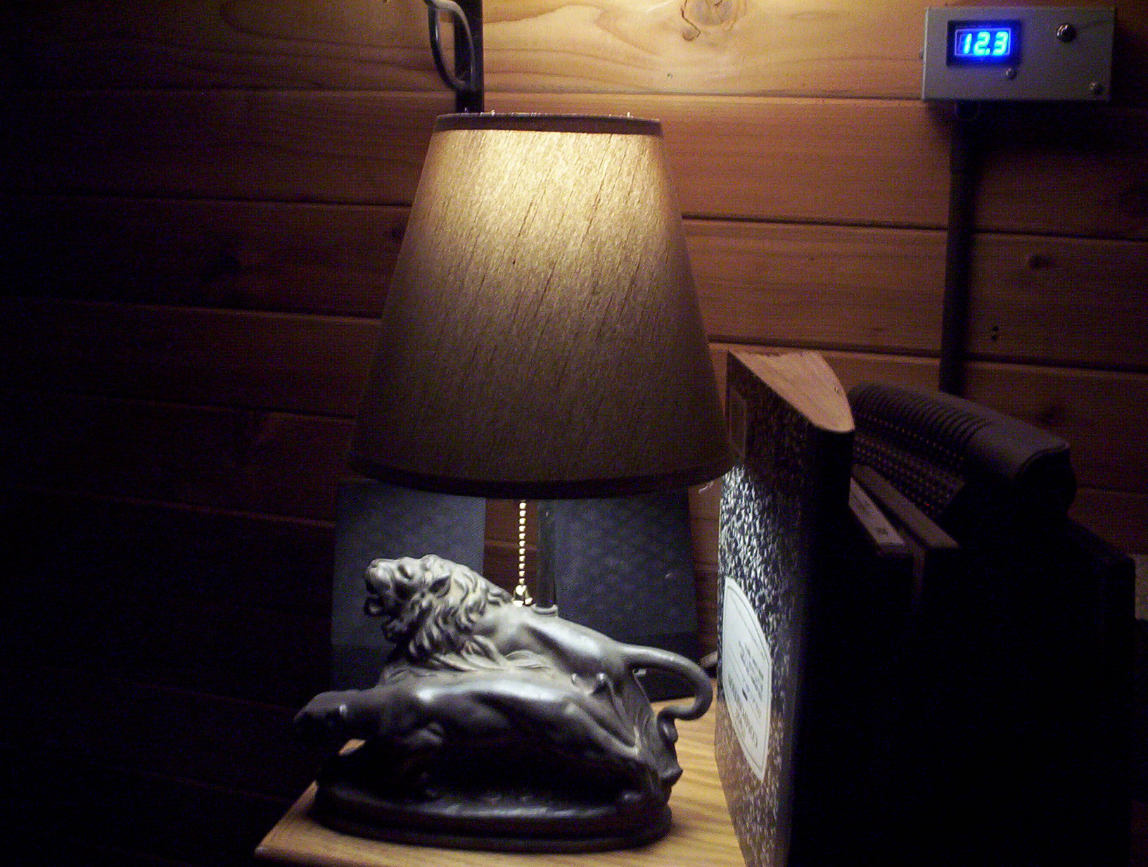 100_4619Comes right on, doesn’t need a warm-up. It’s a nice bluish light, a little dimmer than the CFL but easier on the eyes. Don’t know that I’d choose to read by it, but that’s not really what this lamp is for. And it draws a lot less juice, which is good because the whole idea of a 12-volt alternate lighting circuit is for times when juice is so lean you don’t even want to run your inverter.