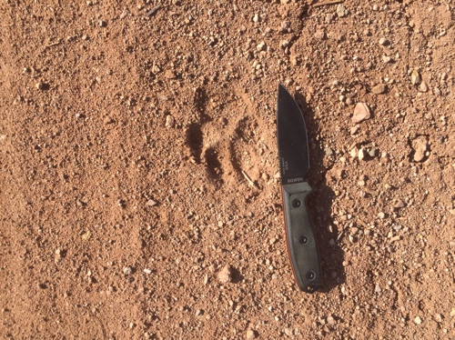 More than 3 inches front to rear. That’s getting near Little Bear territory, a quite big dog. There are rumors of strays around lately. Ferals can be more troublesome than wolves or coyotes or cats, because they’re not naturally afraid of people and sometimes downright hostile…
