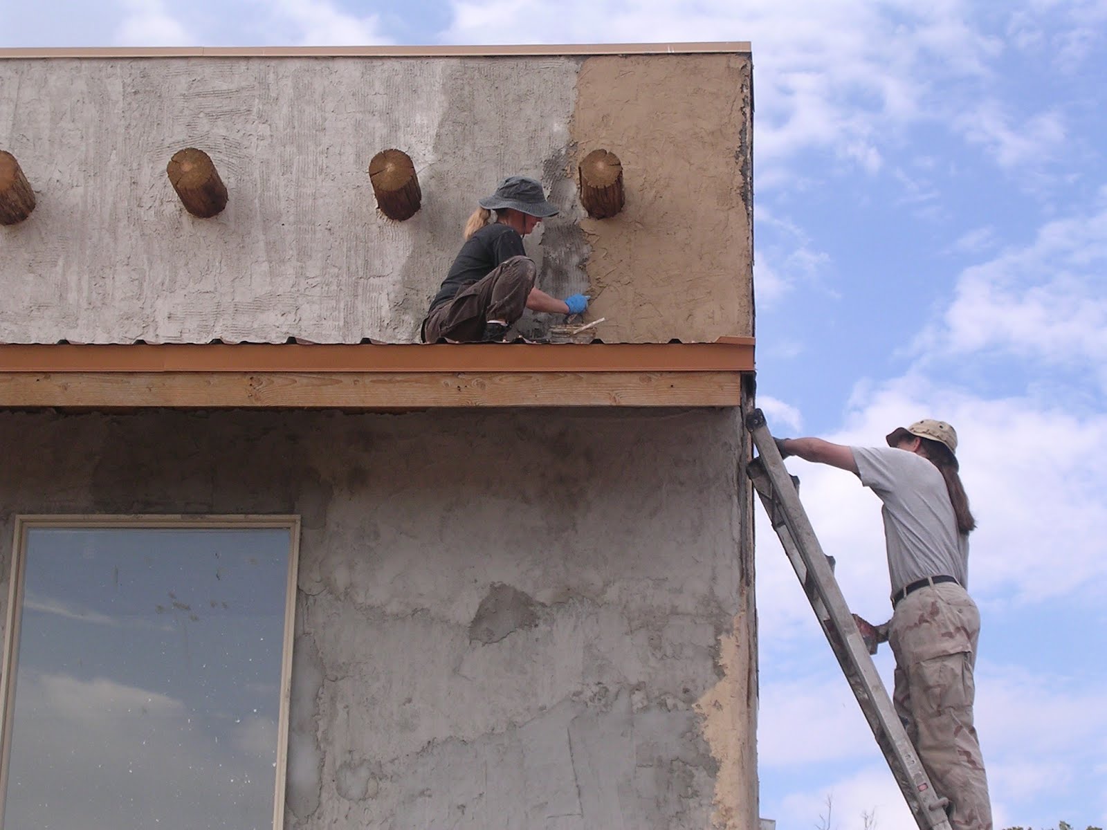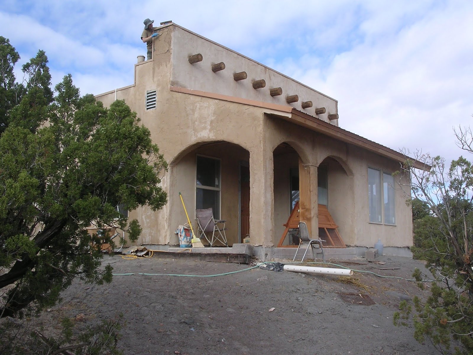 We didn’t quite finish yesterday, so it actually ended up going six days. We got some cracking, alas, but other than that the house looks really good. Much better than concrete grey, anyway.