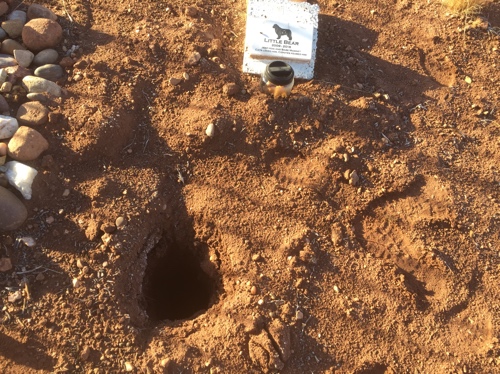 Several of the graves on Boot Hill have decorative rocks that may serve some accidental protective function. I never got around to doing that with LB’s grave, and this morning I found reason to regret that…