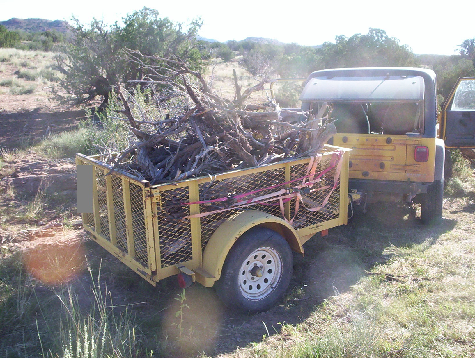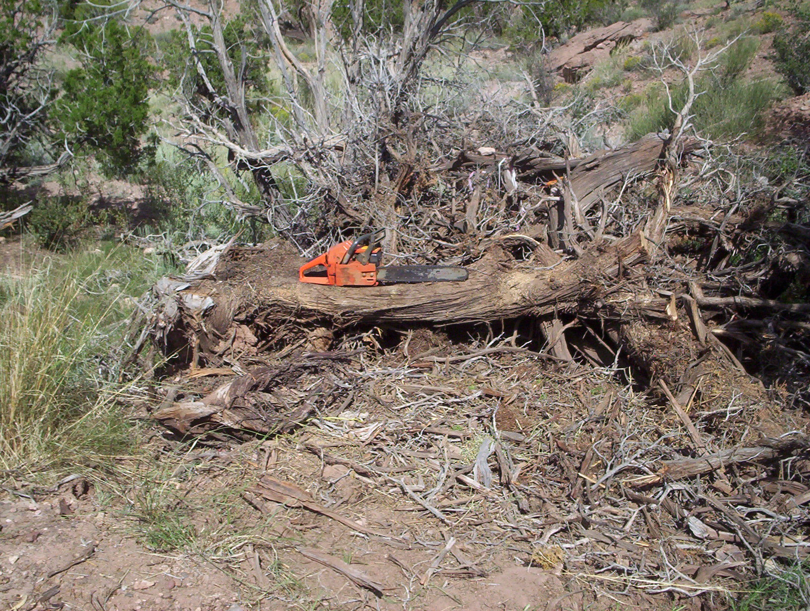 My first husband and I used to cut a fair amount of juniper, and also manzanita and even some larger creosote bushes. The sand and dirt in the old stuff that was down was a big problem for the chainsaw, and we usually set it up on rocks and beat the tar out of it as much as possible before starting to cut it. Some of the juniper was pretty big, and couldn’t be lifted until it was cut at least some, but I think we saved a good number of saw chains for our efforts. Going to be harder to do with just you, obviously.
