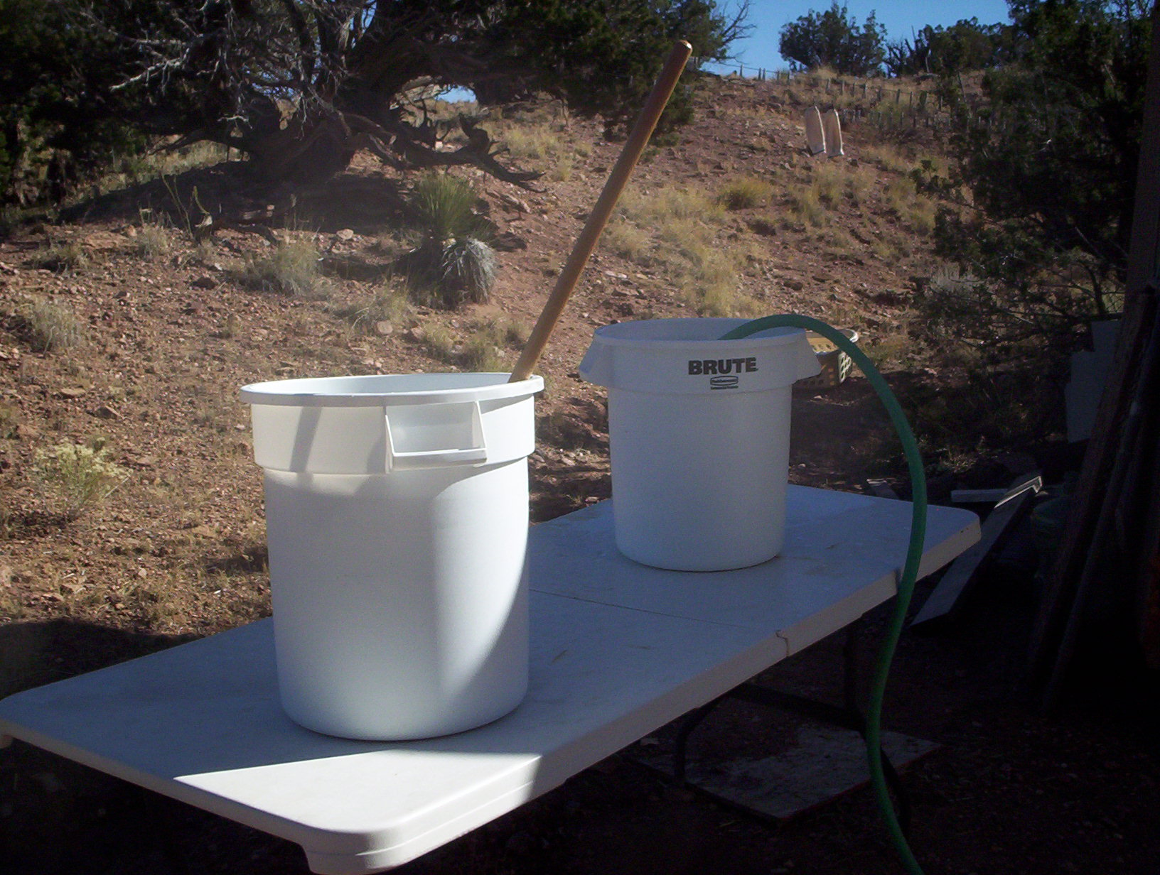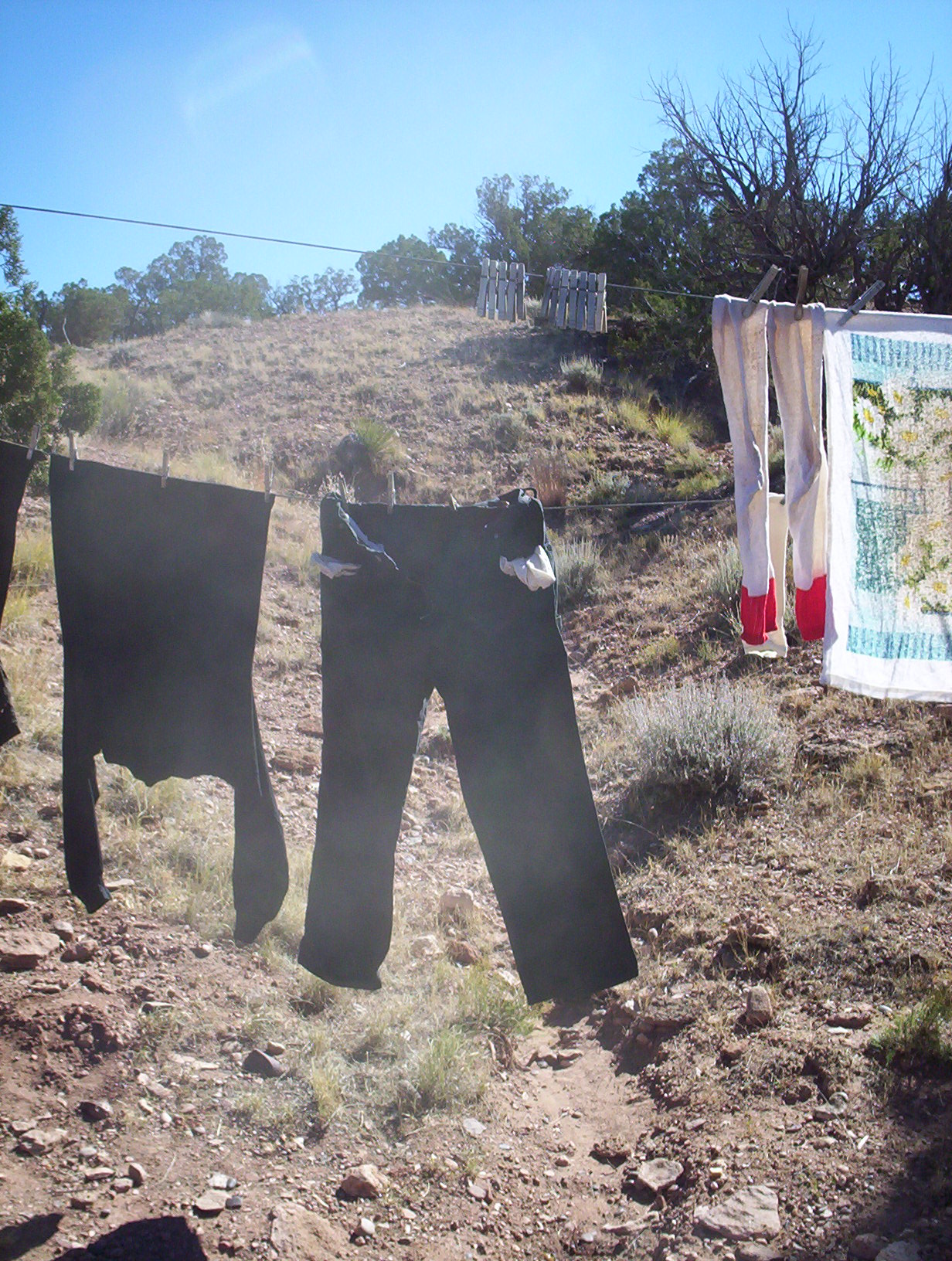 100_4472I was taking advantage of the narrow window of sunlight on the laundry table which gets narrower the closer we come to the Solstice. I’m going to have to move the table, but resist because it’s so convenient to the front runoff ditch. All that water has to go somewhere, after all. But this spot is right between the shadows from the Lair and the powershed. Longer they get, the narrower my sunny window.