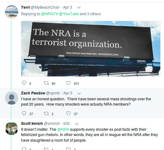 I’m not even an NRA member and this offends me. A deranged PETA vlogger who probably hated the NRA as much as anyone alive gets medieval on YouTube’s ass, and all 5 million NRA members who didn’t do it are to blame because guns. That’s some penetrating logic right there, Clyde.