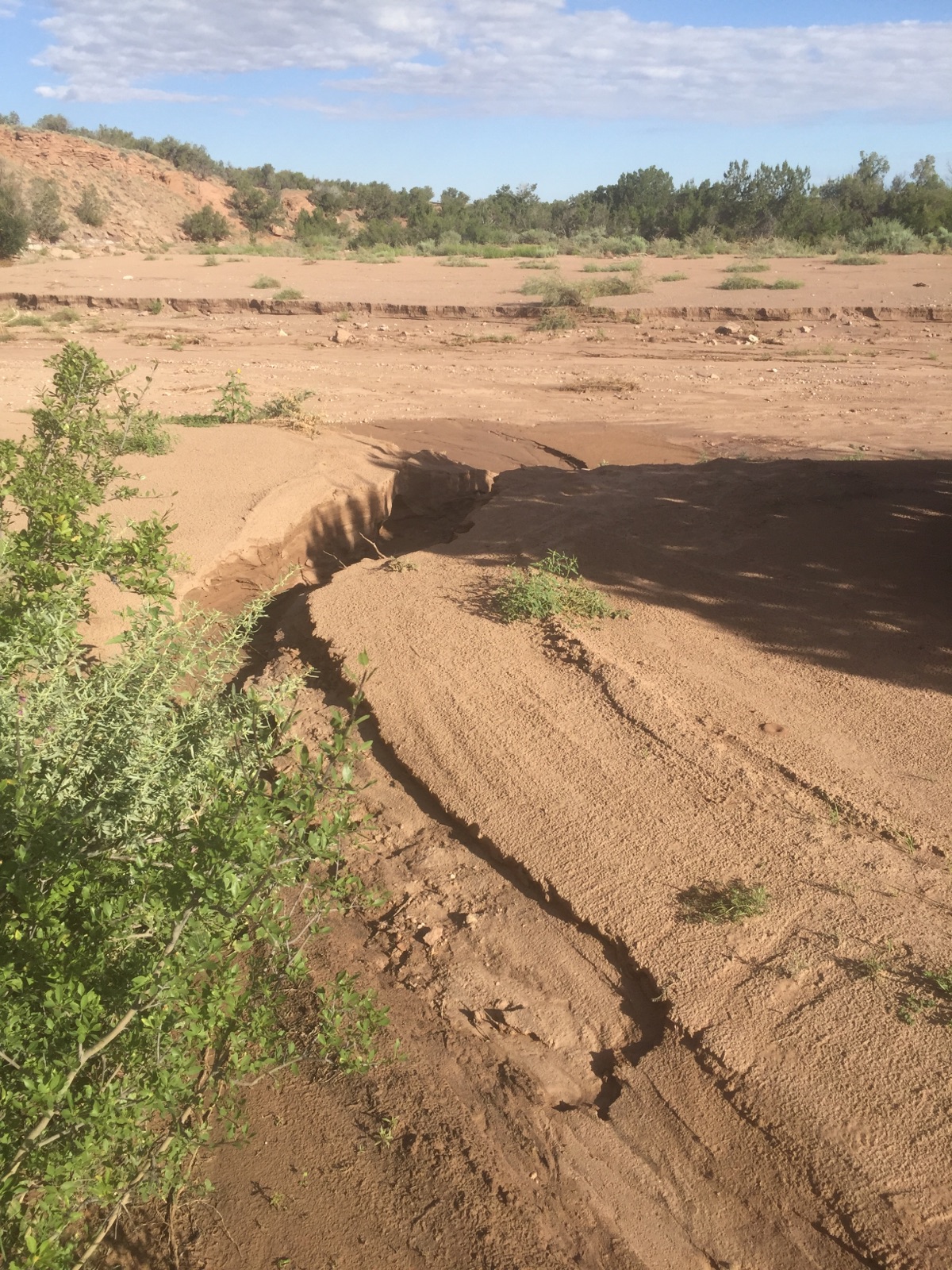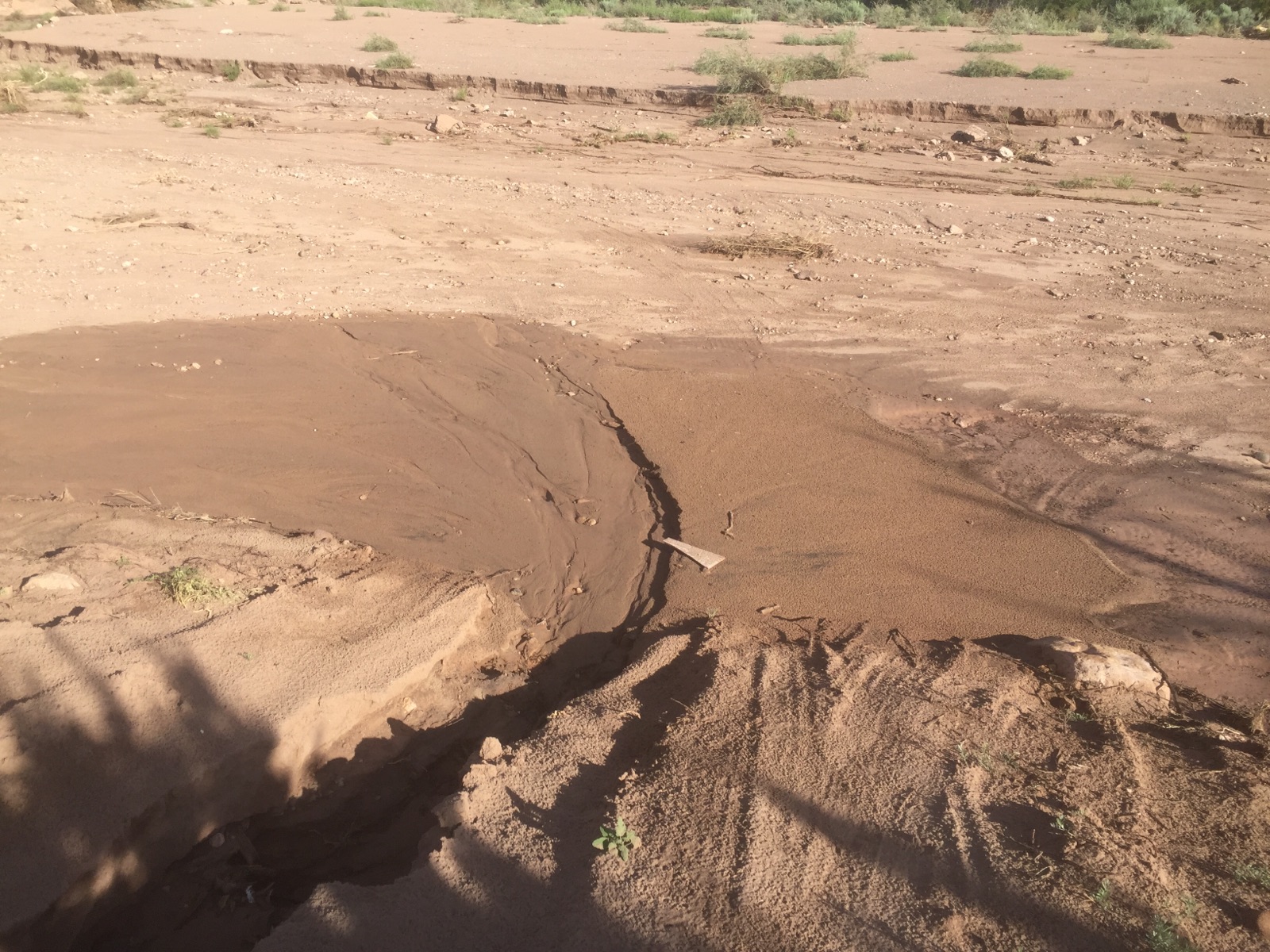 …and when that gully runs hard it blasts a nice big ditch through all the sand and silt that the last flood deposited, right through my alternate driveway.