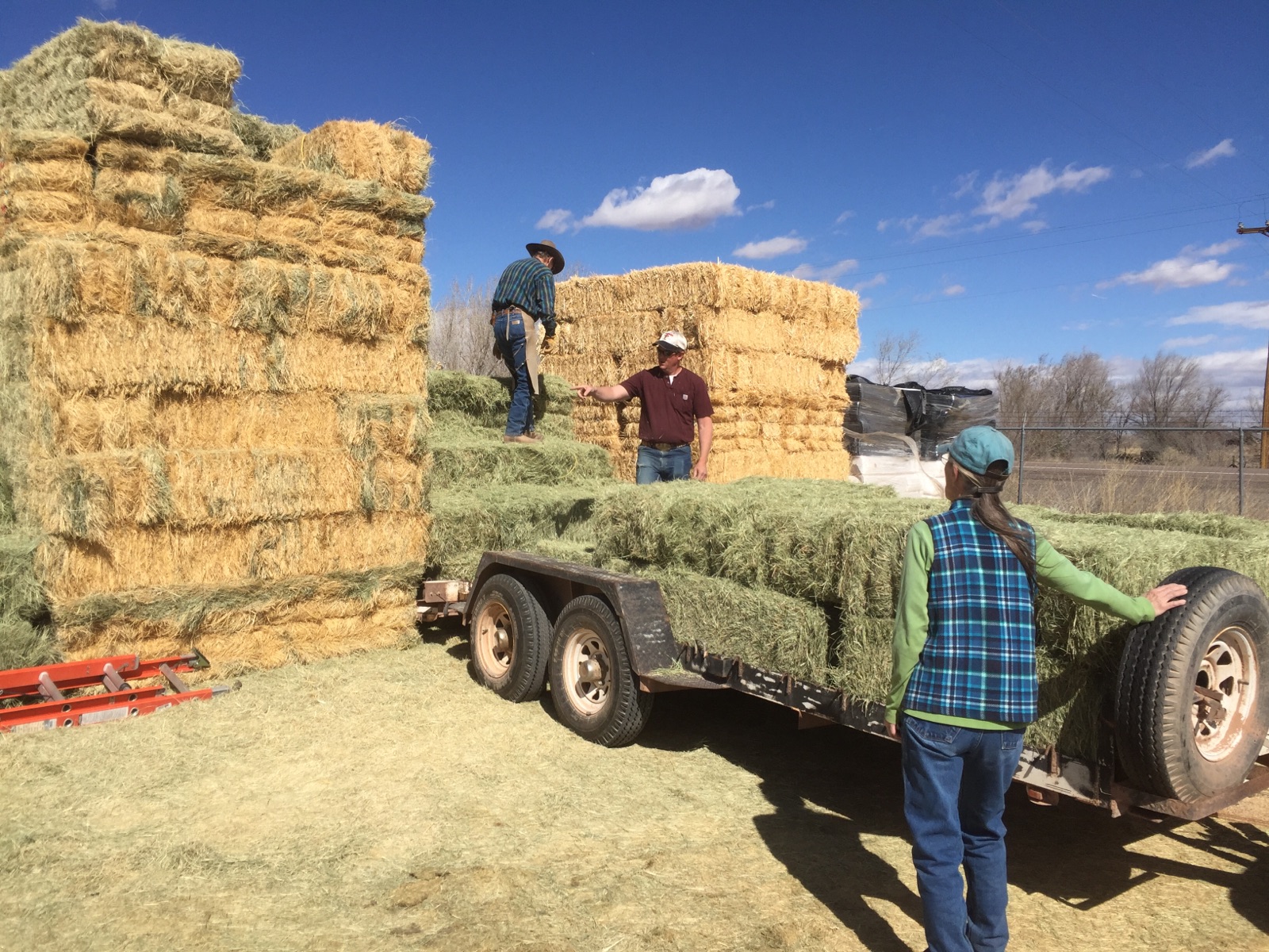 Okay – I got the call just as I came in from morning chicken chores, which meant I grabbed my hat and gloves, patted LB on the head and bolted out the door. We loaded the hay on their flatbed, drove to town, unloaded it, loaded 22 bales of new and improved hay (and 2 bales of straw and three sacks of chicken pellets and one sack of sunflower seeds)…