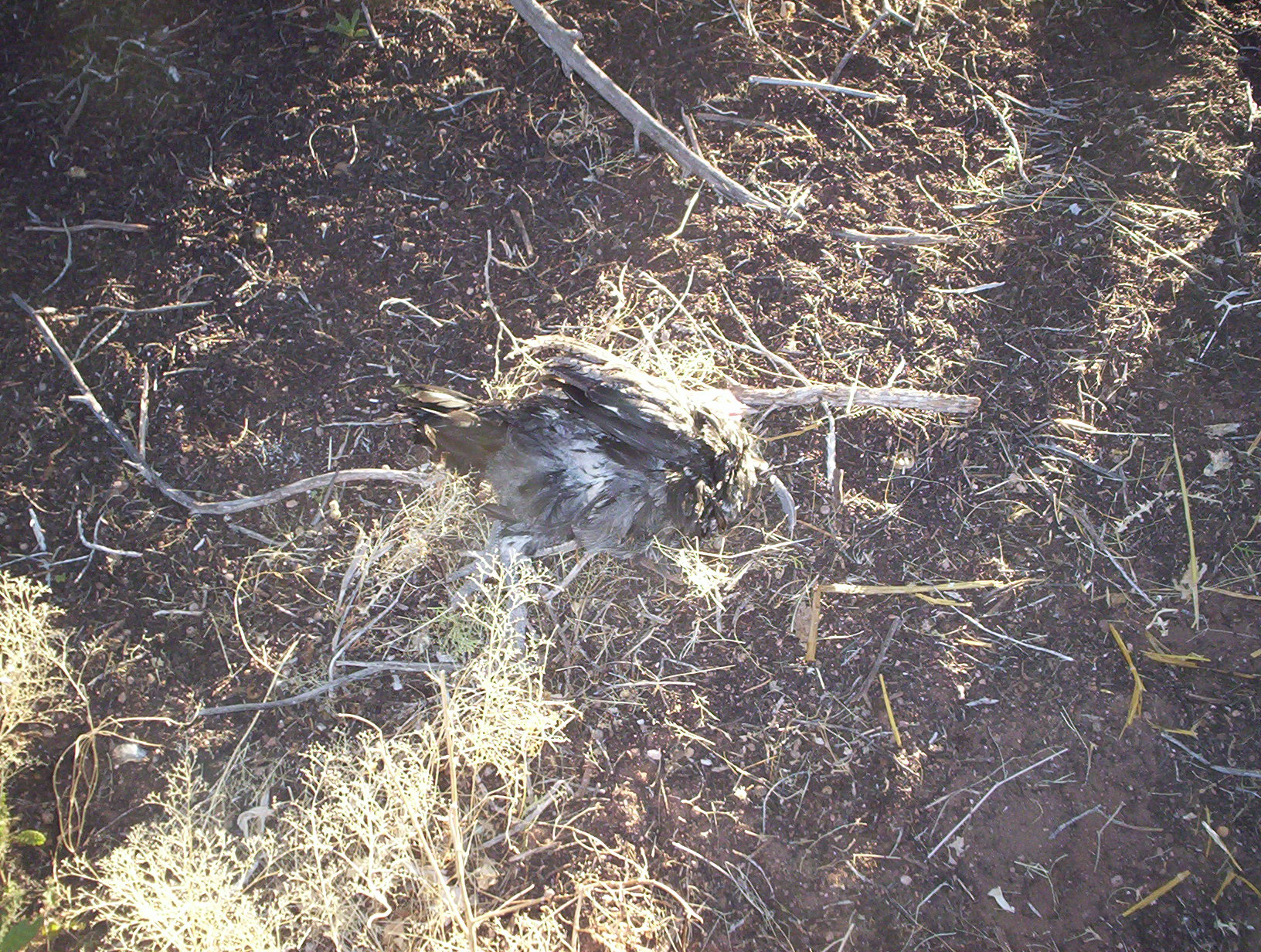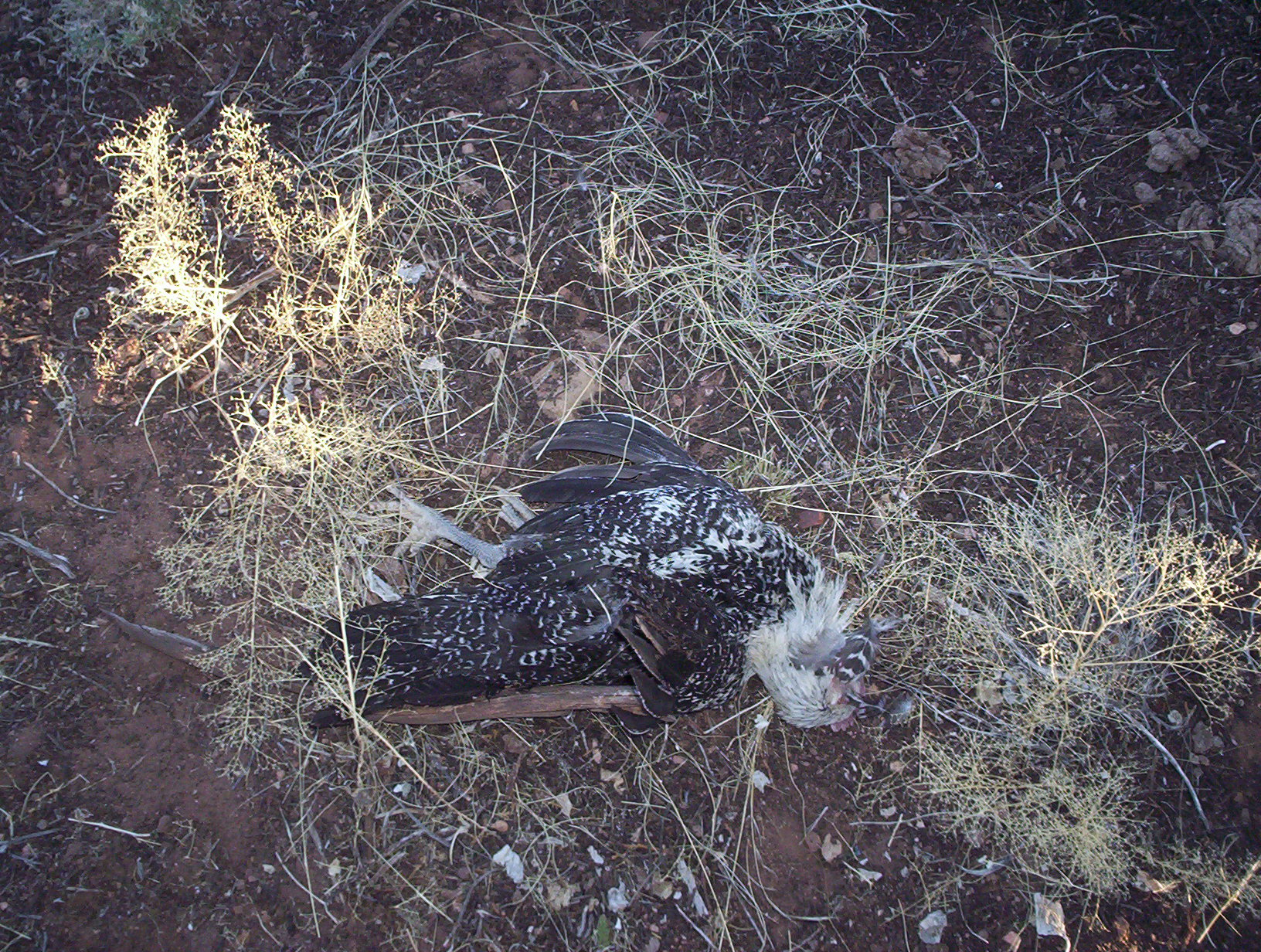 I’ve got three “killed for fun” deaders and an unhealthy quantity of white feathers, and that’s all. There may be traumatized survivors in the trees, but I saw no sign of them.