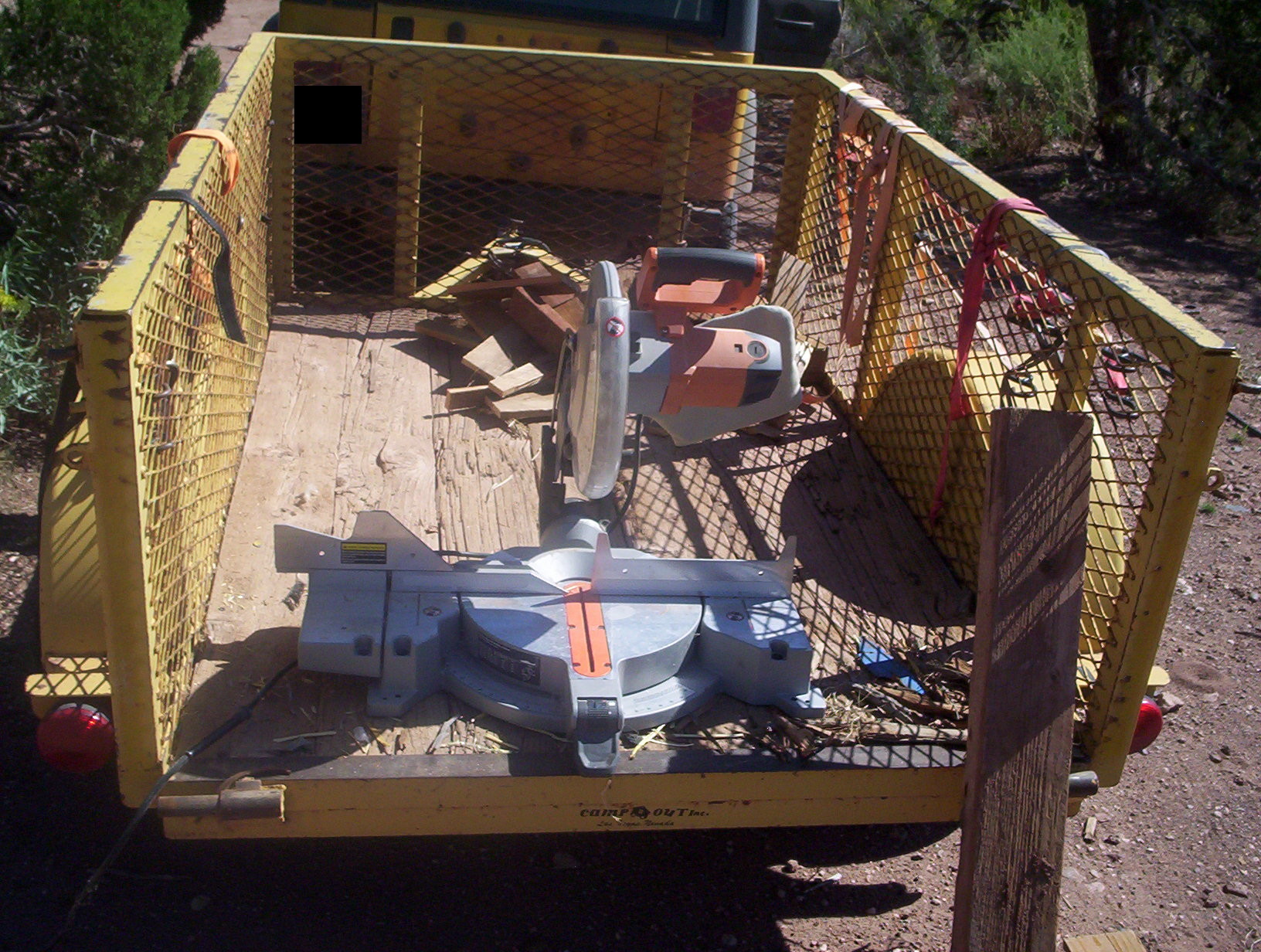 Backed the trailer up to Ian’s Cave, current location of Landlady’s chop saw.