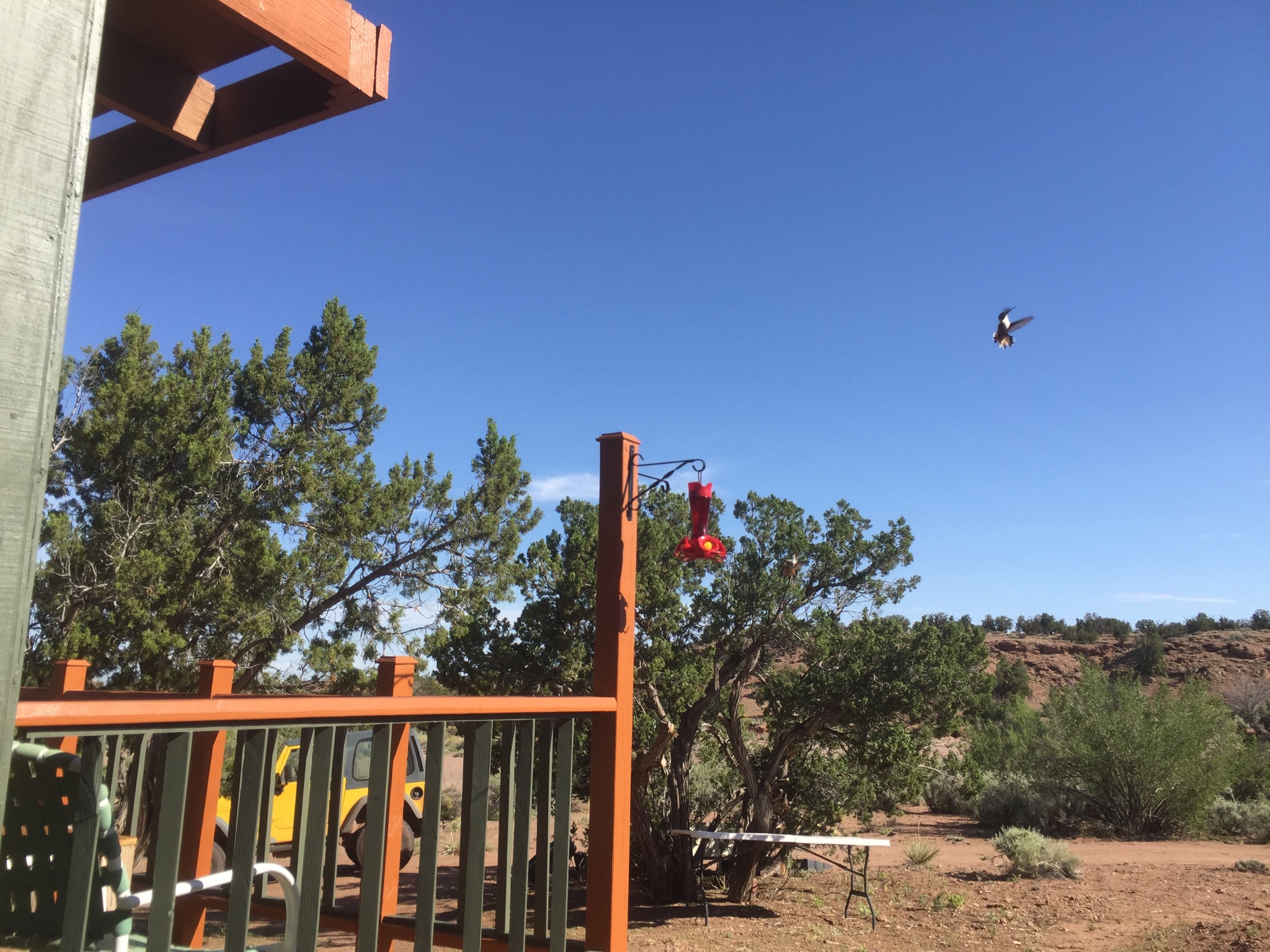 For the first several days the new hummingbird feeder’s customer base was limited to one or two green ones and one really aggressive red one that devoted his very life to chasing the green ones away. So actual nectar consumption wasn’t very great.