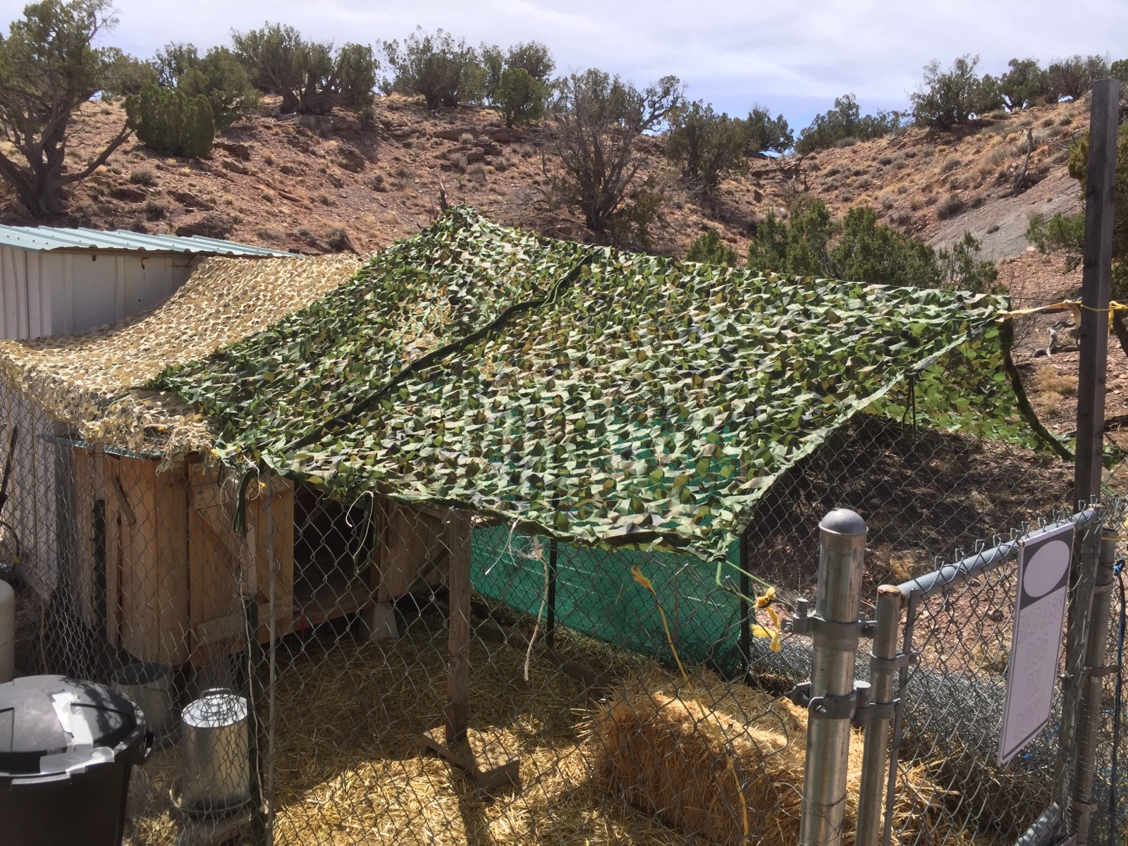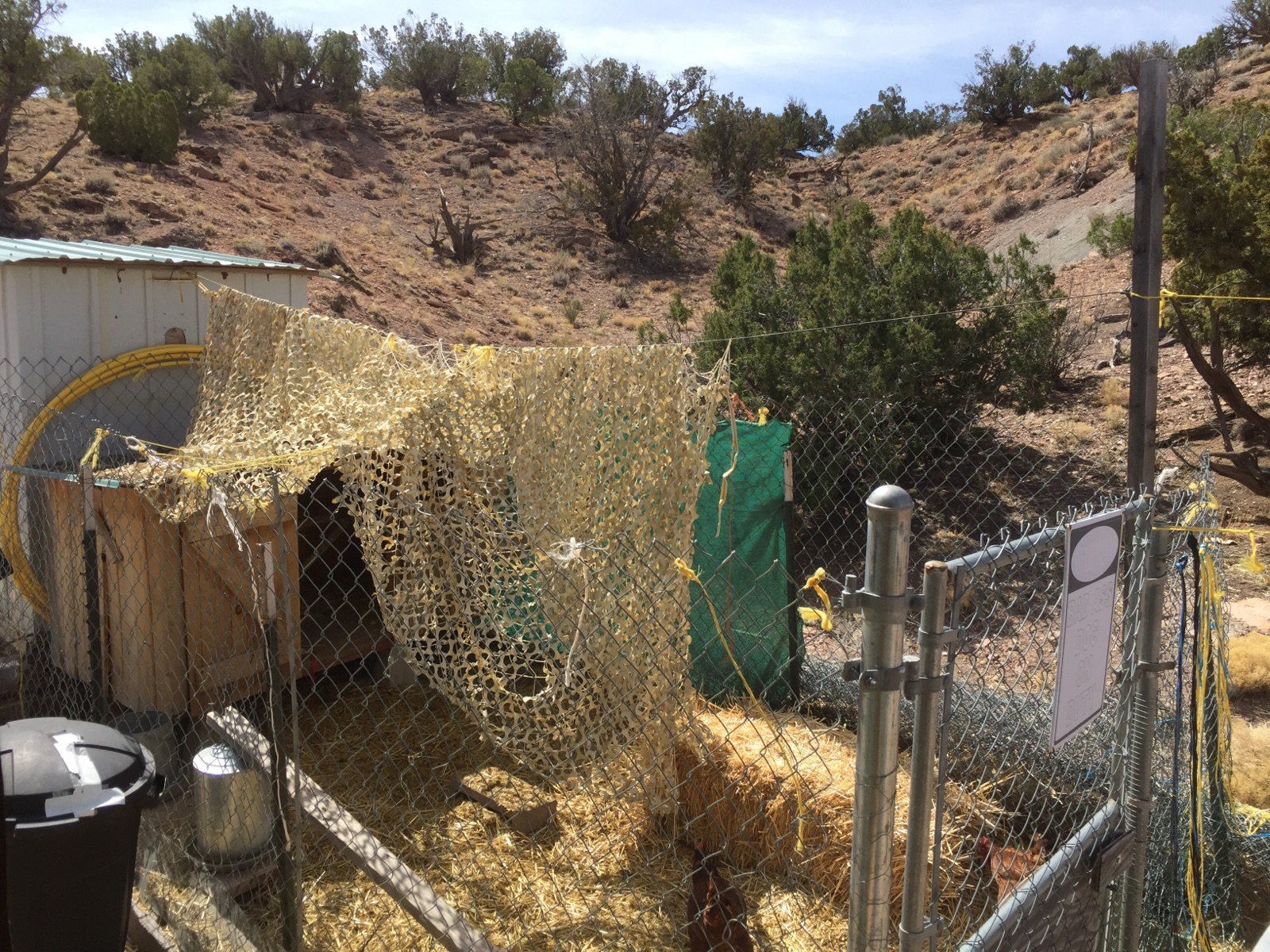 I got the chicken yard’s top cover in early 2015 to replace the original, an old cargo parachute, which was in streaming rags in far less than two years. (pro-tip: cargo chutes do not withstand constant UV exposure for any substantial length of time.)