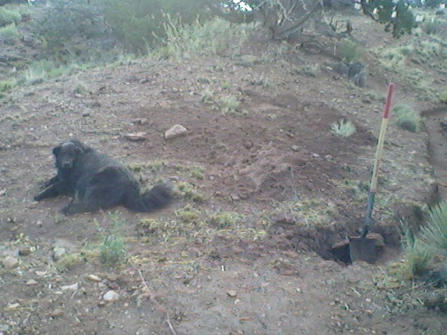 I got into this a few days ago and then set it aside to concentrate on painting. But we’ve had two successive rainy mornings and it’s only a brief, indeterminate amount of time before the gullies run. Really time to get my trenches in shape. So I took it up again for an hour yesterday evening, hit some rocks, and determined to finish this morning. If only LB will get his fat butt out of the way…