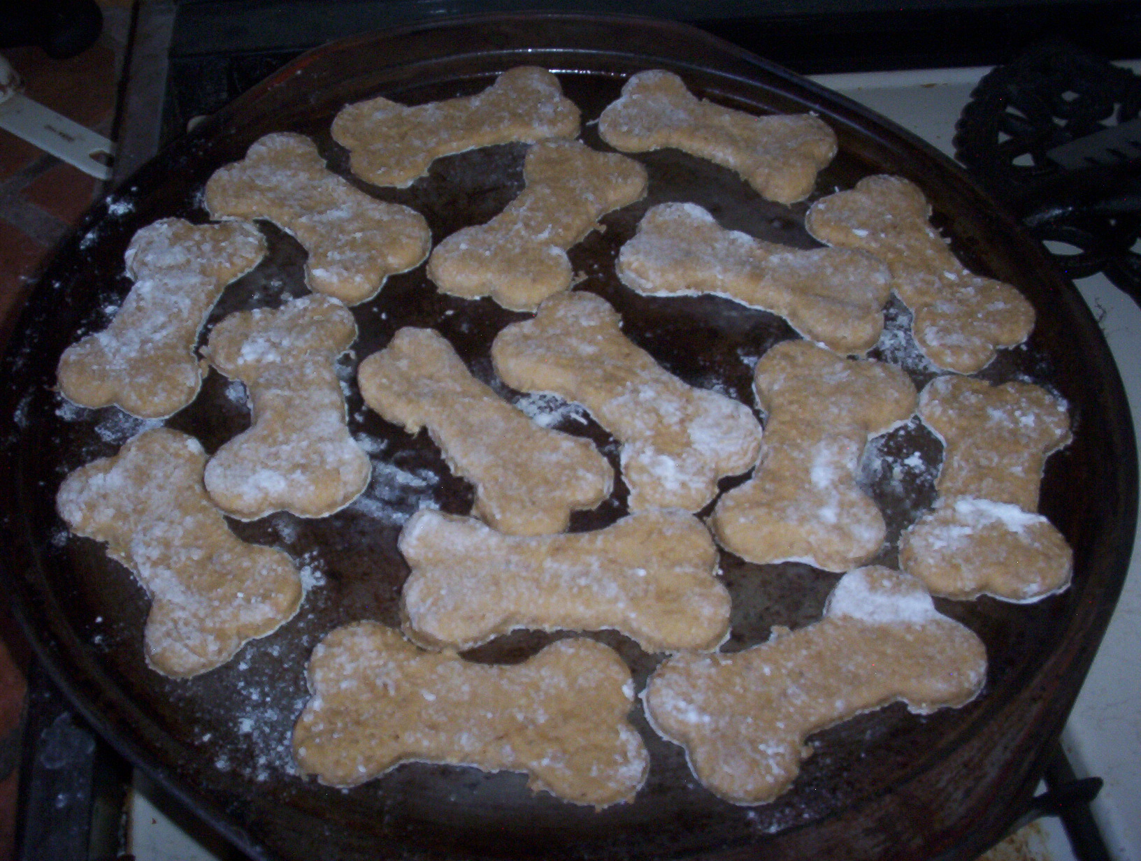 Bread and dog biscuits, followed by an enormous cleanup…