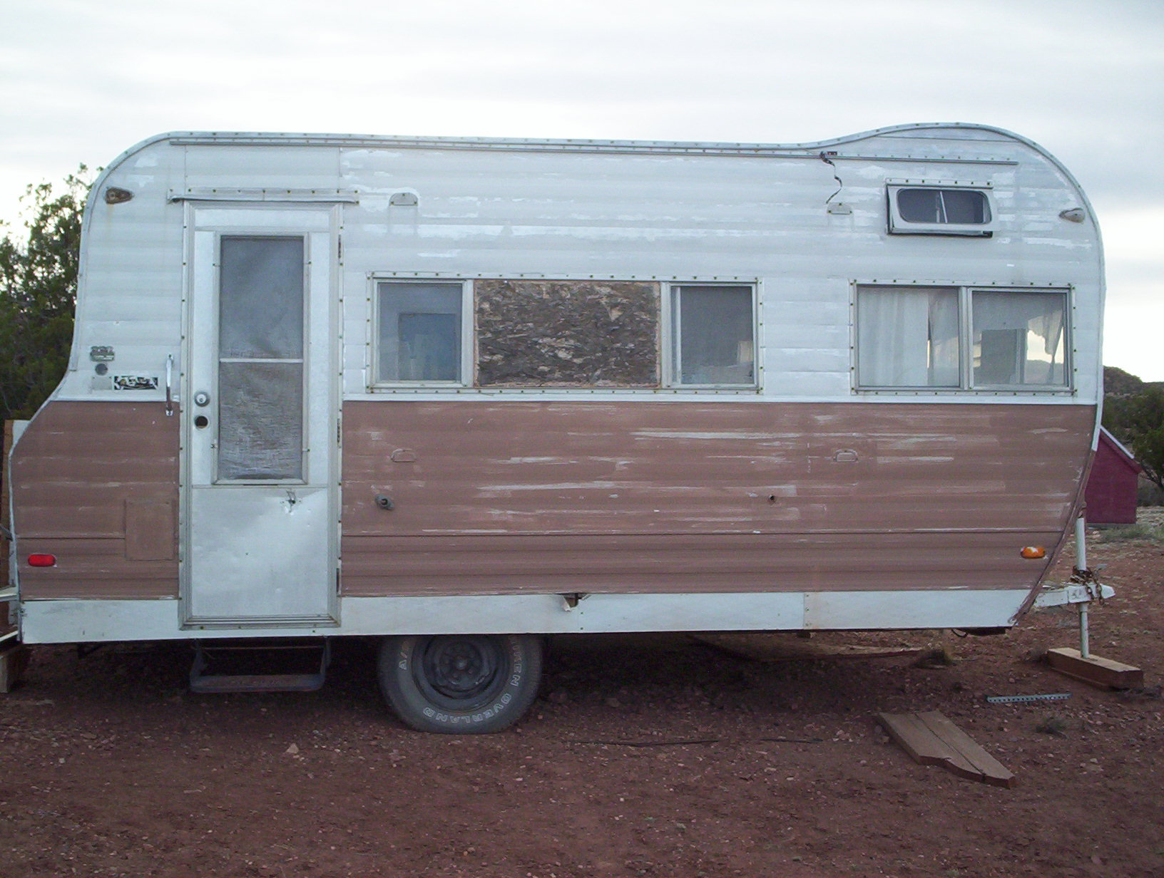 100_4832This is Serenity, the very first inhabited structure on Landlady’s property. It long predates me. In early 2009 Landlady, sick of looking at it, requested that I make it go away. She was non-specific as to how or where. Seemed to me it might still have some use, so I hauled it off to a place out of her sight and in the fullness of time it became my reloading shack.