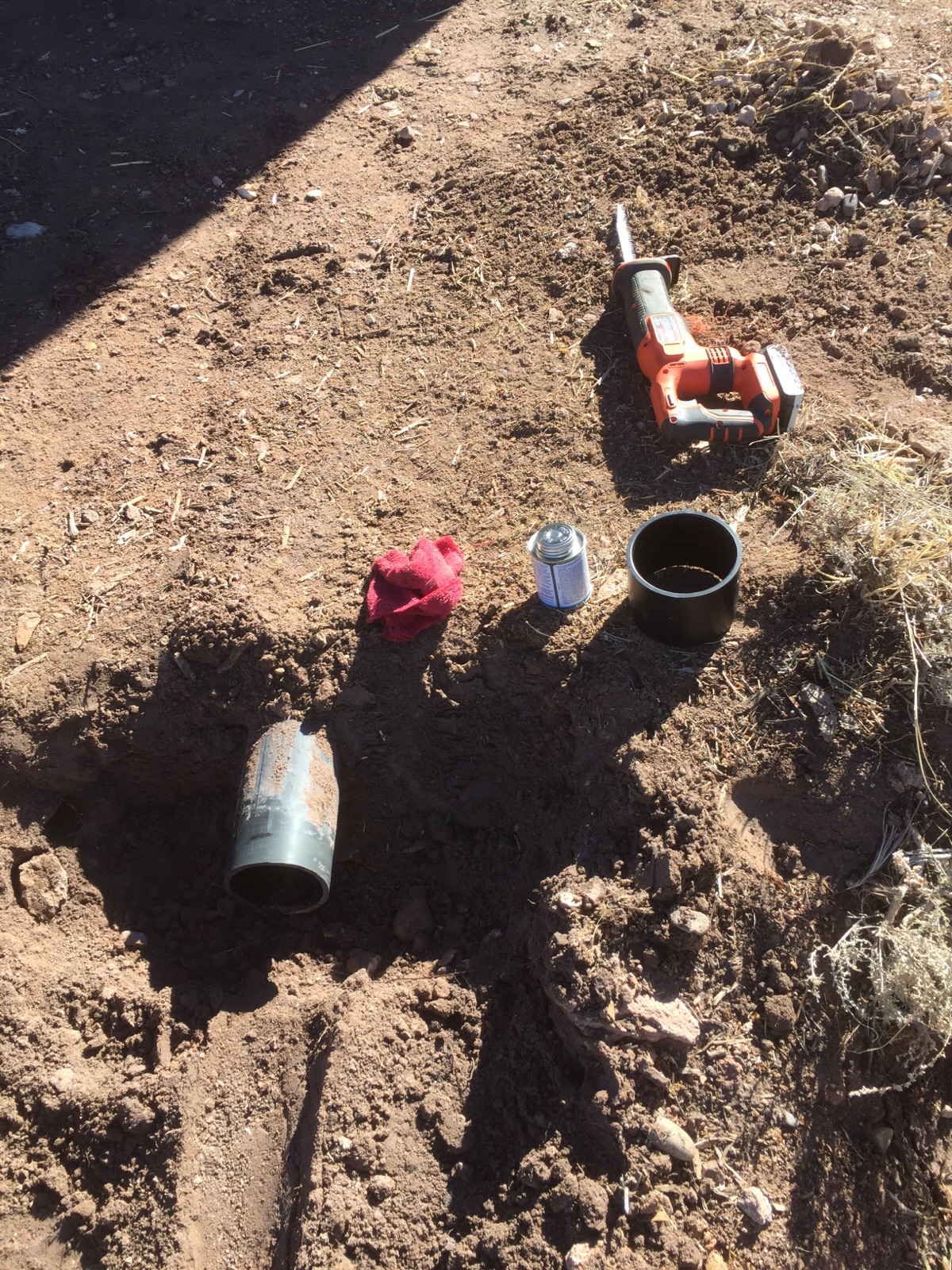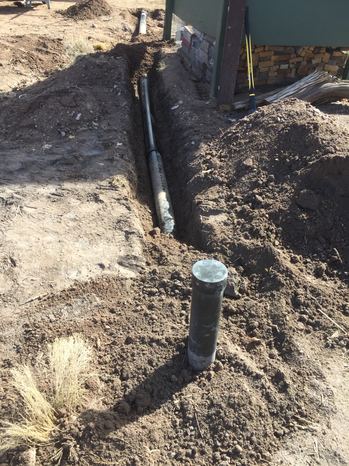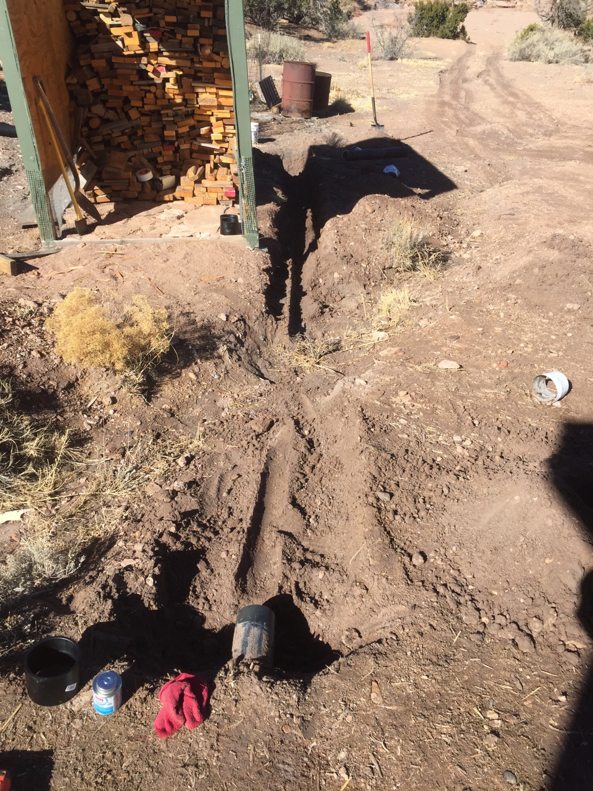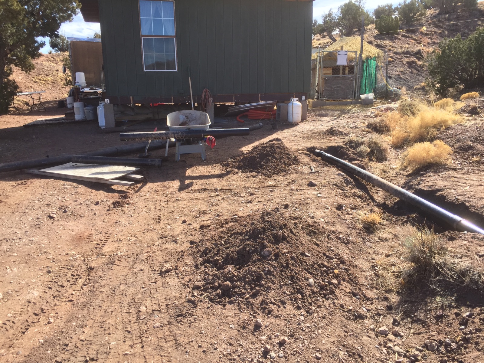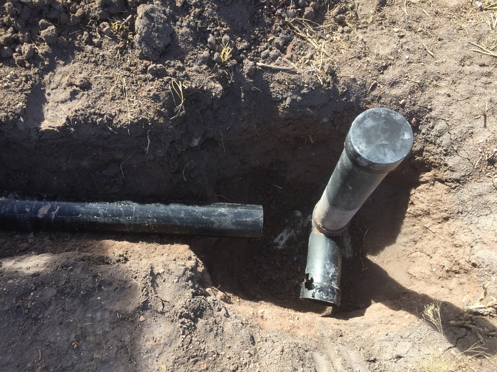 The pipe failed at that point where it intersected the drainage ditch. So we’re going to do something different, using a lot of the old pipe as a sort of culvert under the sewer pipe, allowing me to bury the whole thing. At least that’s the plan.