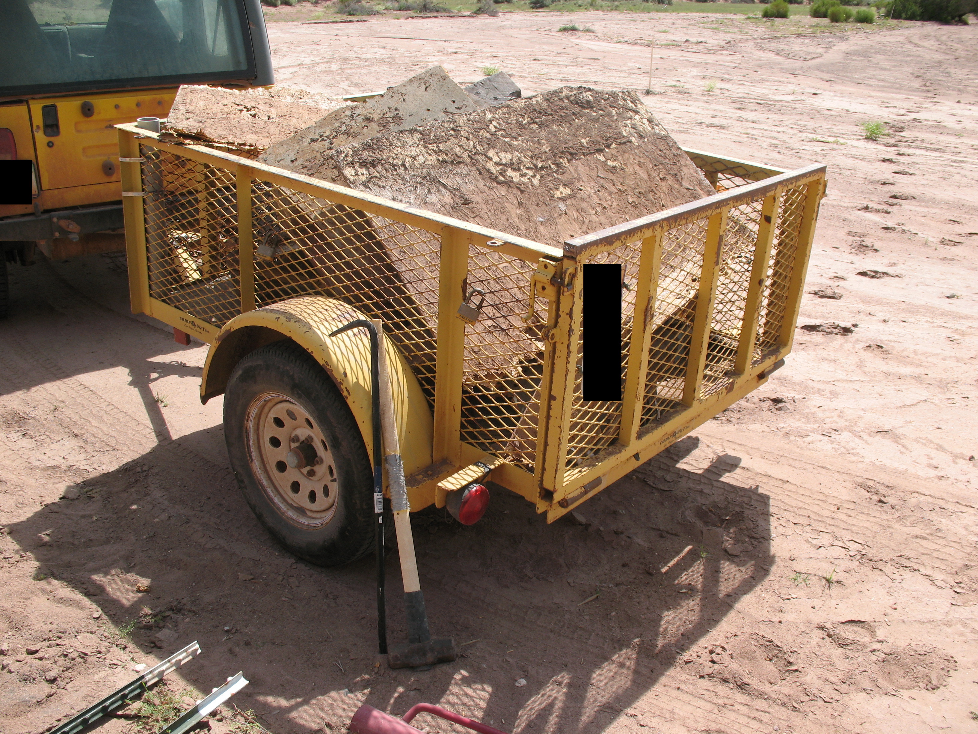 I came back with the trailer and some tools, broke up the big thing we’d been using as a backstop, and loaded it up for later conversion to Global Warming…