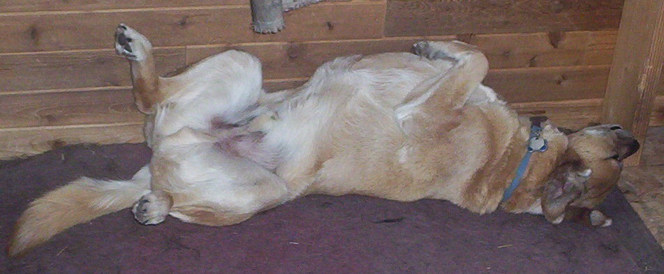 Ever seen a 100+ pound Newfie-wannabe dog levitate like a cat? He was across to the far side of the cabin, turned toward me, every hair on end, barking and snarling – and even when I called to him and he woke up enough to see that this was his own Daddy he was threatening with painful death, he needed a moment to pull it together.