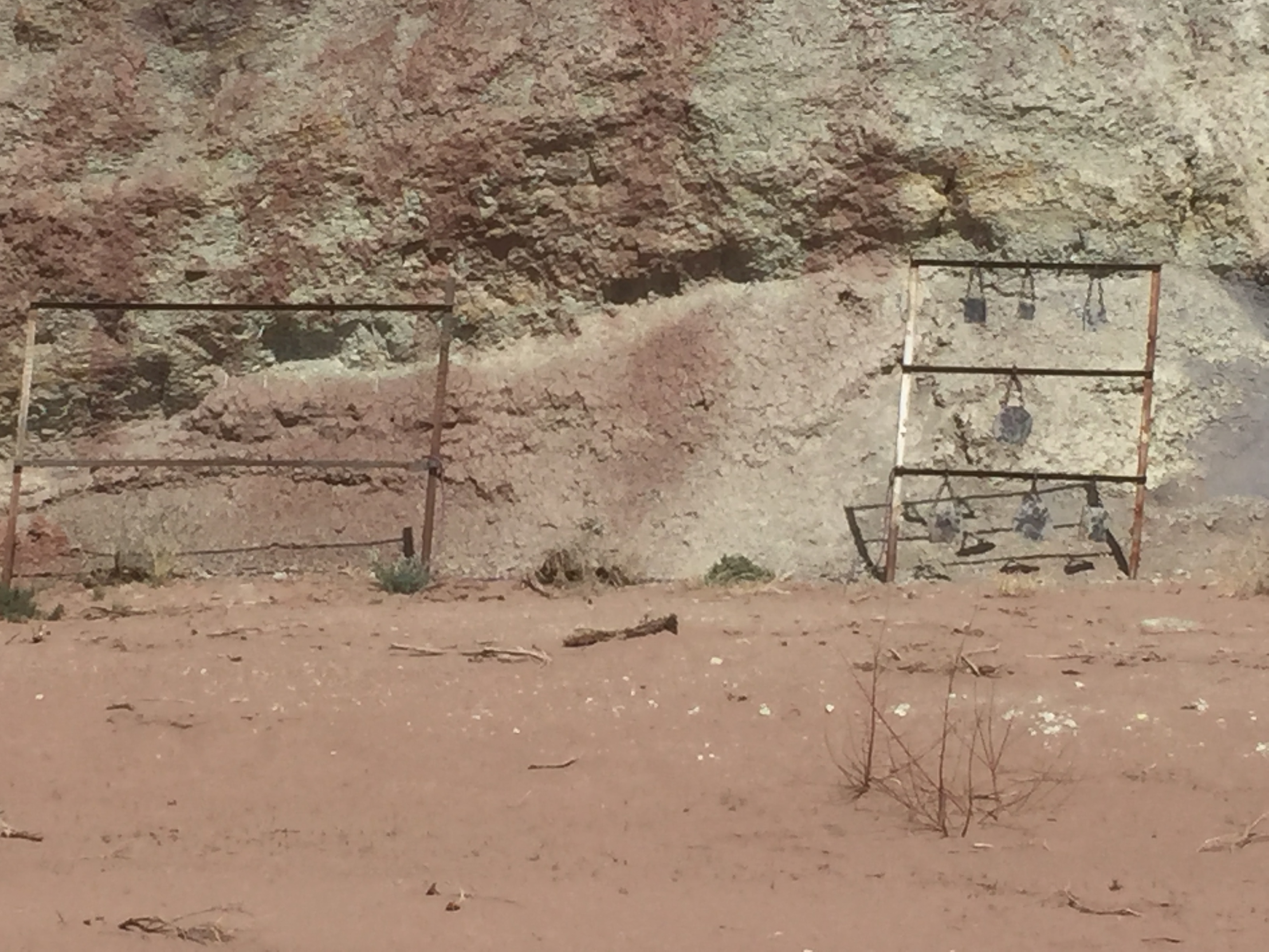 Except for .22lr I didn’t even lose any brass in the sand! That’s got to be a first. I have range stakes out at 25, 100, 200, 300 and 400 yards but I’d be lying if I claimed to ever do more than check to see if those last two are still present. The scoped AK can get hits at 200 and monotonously at 100 but I’m hopeless at any range farther than that. Can’t hit what I can’t see, but that’s okay; in 12 years I’ve never even tried a shot in anger at more than 100 yards and varmints don’t shoot back. I’m much more concerned with fast at close range than precise at distance. Which is why I like these ugly guns my betters keep telling me I don’t “need.” They’re made for that. As for the Tracker: I’m sorry to report that the timing issue has deteriorated to the point where the pistol can no longer be called reliable in double action. I had one firing pin strike that actually missed the primer. Shoots just fine in single action and it’s very easy to get 25-30 yard hits with it – but it has not proven to be anybody’s notion of a high quality gun. If Ian reads this he’ll shake his head and say, “I told him so.” I’ll be examining the gun during cleanup to see if it’s shaving bullets – which it probably is. But thumb the hammer back and it works fine.
