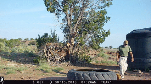 Finally decided to take advantage of the cattle guy having moved the herd out due to there not being any grass because extreme drought, and put the camera the one place where you just know animals will want to congregate…