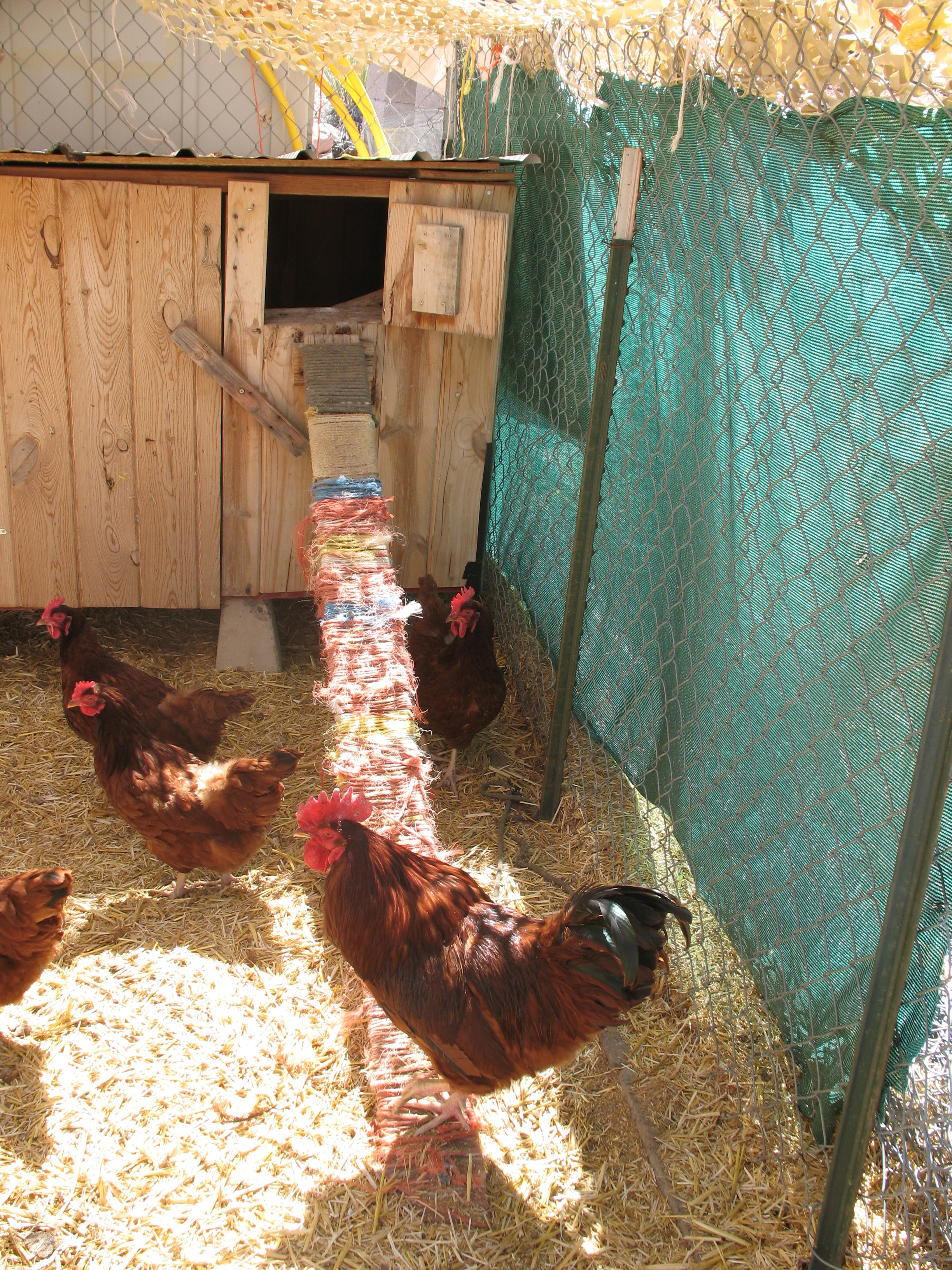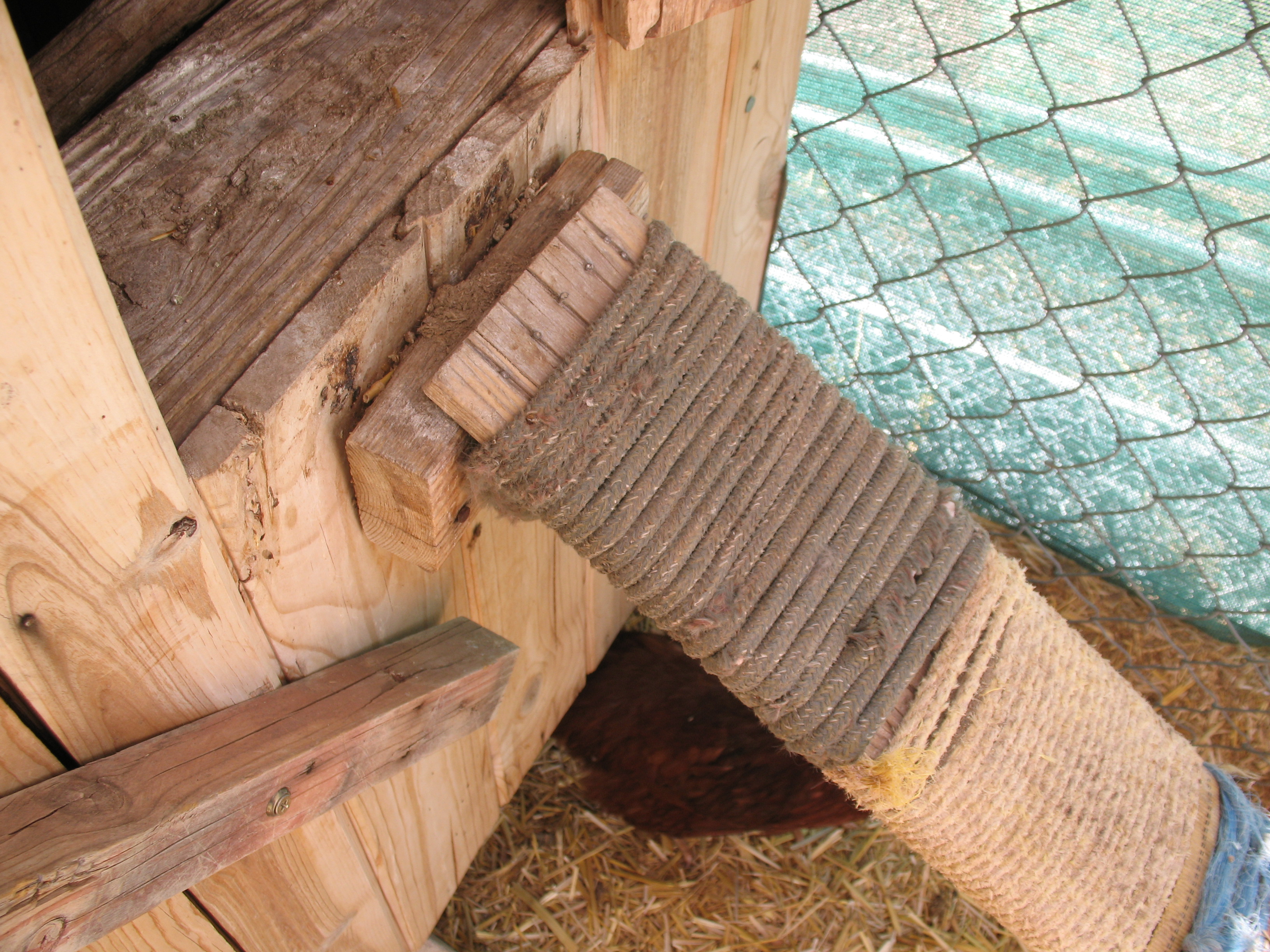 Ah yes, rope. I used rope for a lot of things when I had all the animals, etc. But I quickly learned that natural fiber rope didn’t do well in the desert. Nylon rope is not always easy to use, and sometimes difficult to tie/untie, but it lasted a lot longer. I never had a “traditional” chicken coop myself. 🙂 Can’t even remember now how the birds got from the floor of the pen to their nesting boxes. Guess I figured that was their problem. LOL They managed it, and there was a heavy flap at the back of the coop so I could reach in and get the eggs, but that’s all I can remember. I do know I would have liked to rebuild the whole thing, since what I had was so very difficult to clean, but I never did find the time or money to do it.