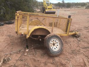 Fortunately I didn’t need the trailer very badly. I pulled the tire off this afternoon and brought it back to the Lair but didn’t bother airing it up to diagnose the leak – I’ll do it mañana. It either picked up a nail at the county dump (very possible) or the valve stem failed…