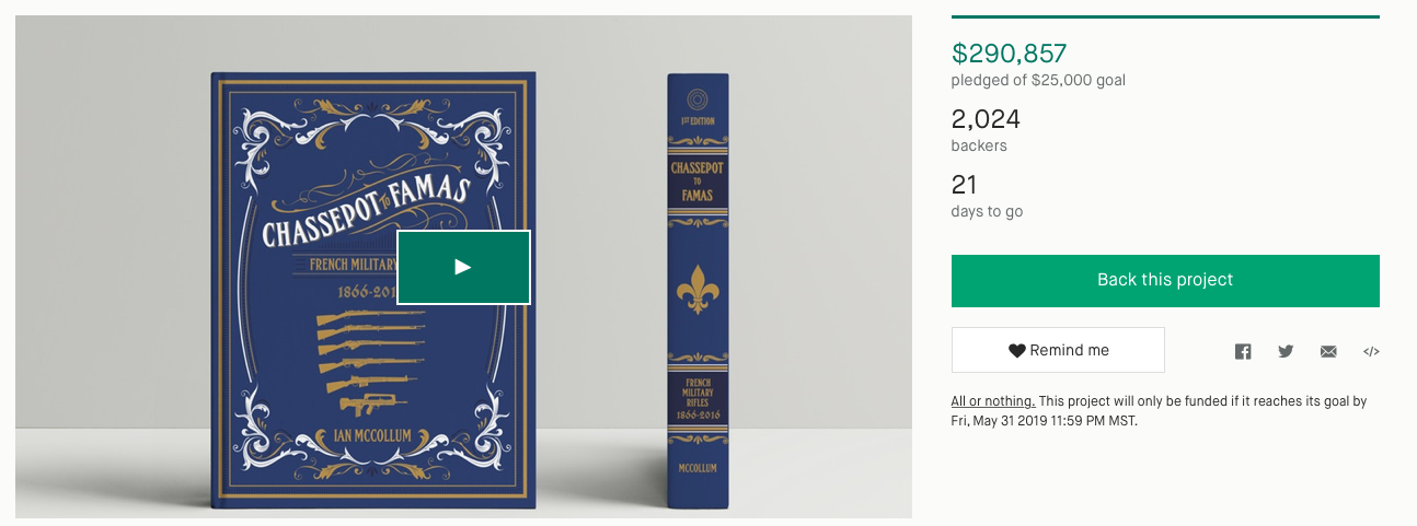 The Chassepot to FAMAS kickstarter has settled down to a merely extraordinary first week.