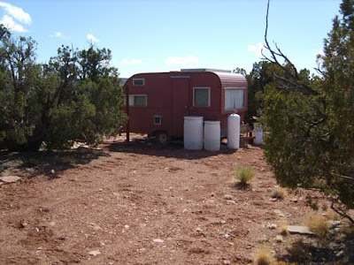 I really don’t know what the story is here. These folks spent considerable money on fencing materials. The fence is not completed, nor is the little patio they started behind the trailer, and hundreds of dollars worth of materials lay on the ground untended. As far as I can tell the area has never been inhabited past scattered camping trips. The trailer is too small for a bathroom and there’s nothing like a septic field, but also no outhouse. It looks like they got interrupted in the middle of their project and just never returned. I’ve never seen anyone around it. It just sits on a ridge, hidden from almost all angles.