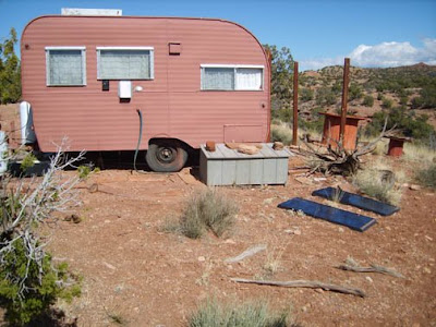 I really don’t know what the story is here. These folks spent considerable money on fencing materials. The fence is not completed, nor is the little patio they started behind the trailer, and hundreds of dollars worth of materials lay on the ground untended. As far as I can tell the area has never been inhabited past scattered camping trips. The trailer is too small for a bathroom and there’s nothing like a septic field, but also no outhouse. It looks like they got interrupted in the middle of their project and just never returned. I’ve never seen anyone around it. It just sits on a ridge, hidden from almost all angles.