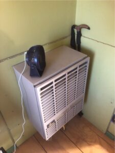 I never used to have to cover the vent, until I added a handrail to the porch stairs. Approximately 20 minutes after I did that, though, I got my first mouse nest inside the bedroom heater’s firebox. And since I wasn’t expecting that, it was in quite a mature state – complete with babies – when I did find it. And I didn’t know, at the time, how to clean out the firebox so it was a massive disaster at the time though the long-term fallout was learning more about how my heater worked, which came in handy later, and also learning that I have to cover the vent as soon as I put the heater to bed for the warm season. I actually made a hardware cloth cage for the vent but never found a good way to mount it, so I just wrap it with plastic and duct tape – and check that cover periodically. So far it’s never been bothered.