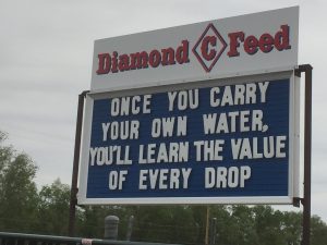 Saw some words of wisdom at the feed store. Kind of reminded me of my indoor-running-water-free winter just past…
