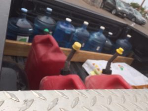 I’ve got that gig going up and down the plateau this week, so I had to fill my gas cans. Plus two water bottles and one from Ian’s place, a sack of hen pellets, four of D&L’s water bottles…