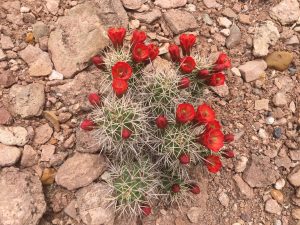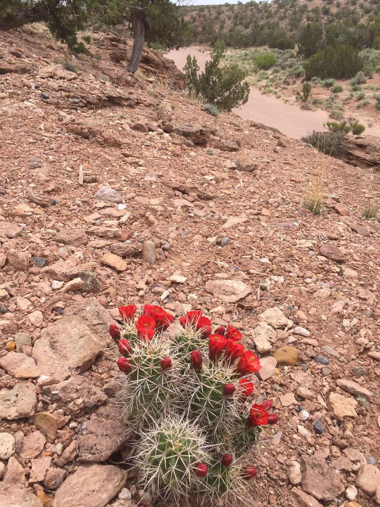 Having loaded the Jeep from D&L’s truck, I drove to Landlady’s place to unload the pellets. Happened to look down the slope to the wash and saw a big splash of red…