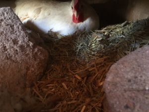 So yesterday afternoon, in an effort to keep the Leghorns from laying their eggs under the nesting boxes, I hauled in a few rocks to block the entrance. This morning I found them scattered about…
