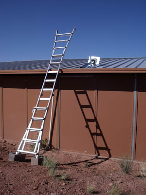 This is my enemy. Going up the ladder isn’t so bad. Transitioning from the ladder to the roof isn’t so bad. Walking across the roof is pretty bad, but I know I can do that. Doing the actual work on the roof is nothing at all. It’s the trip back down, moving from the roof to the ladder, that has made me sit trembling for hours. It’s embarrassing as hell, but that’s the way it is. I don’t know why.