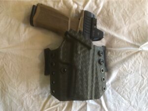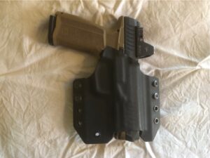 It’s a drop holster with a lot of standoff, it’s a dream to draw and reholster from and I wore it every day for like a year. It’s absolutely not intended for concealed carry so sometimes I had to spend a few hours with the no-name holster and one day this past June I did something financially irresponsible…